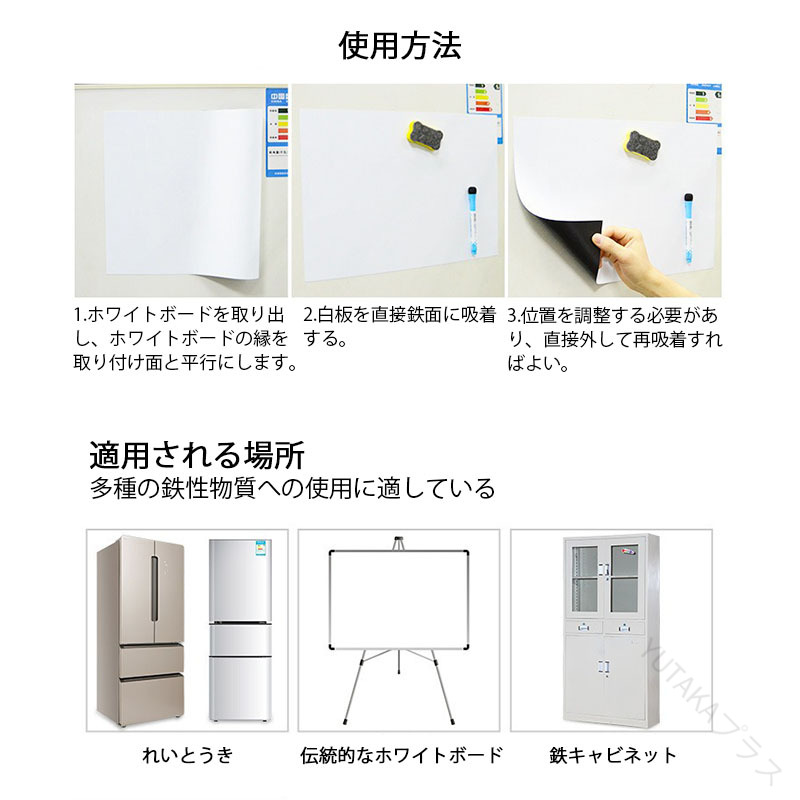 .ホワイトボード マグネットシート A4 サイズ は 粘着なし で 自由裁断 が可能な 書き消し タイプ の お絵かきボード です。冷蔵庫用 の メモボード や 掲示板 としても最適で、磁石付きのため 鉄製対応 可能。オフィス 用 や 家庭用、会議室 での スケジュール表 として 子ども落書き にも適しています。。