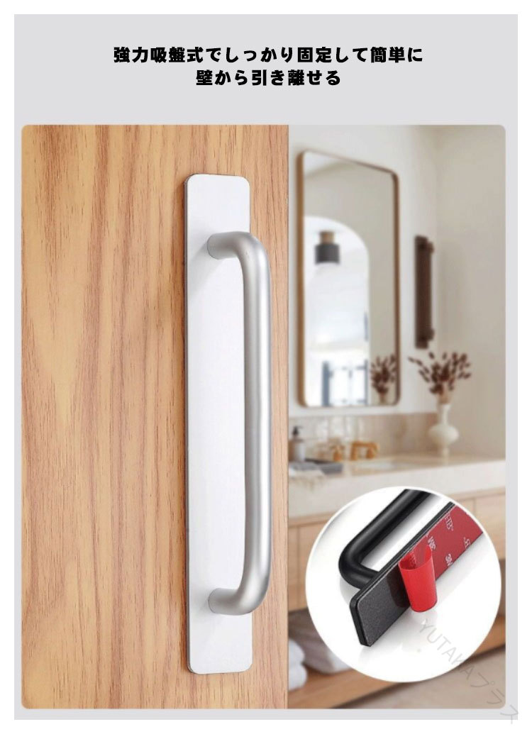 浴室用 強力 吸盤式 ドアハンドル 補助取っ手 取っ手 吸盤式手すり 工事不要 簡単吸着 引き戸 窓サッシ トイレ対応 転倒防止 高齢者 子供 バスタブ