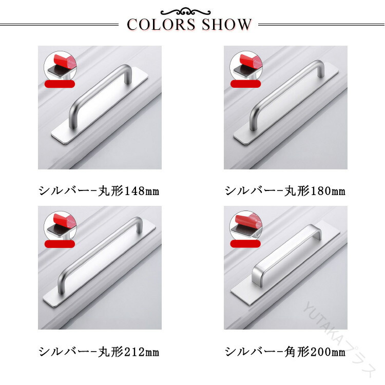 浴室用 強力 吸盤式 ドアハンドル 補 シルバー ブラック ゴールド 丸形148mm 丸形180mm 丸形212mm 角形200mm
