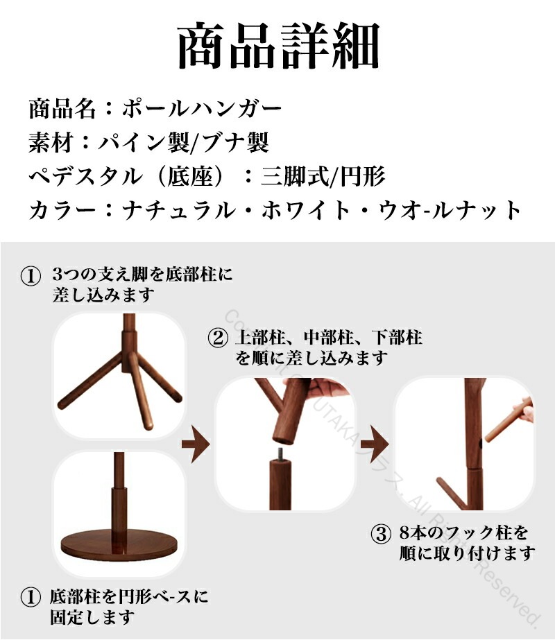 新色 追加 ポール ハンガー コート ナチュラル ウォールナット ホワイト パイン製三脚ベース パイン製円形ベース ブナ製三脚ベース ブナ製円形ベース