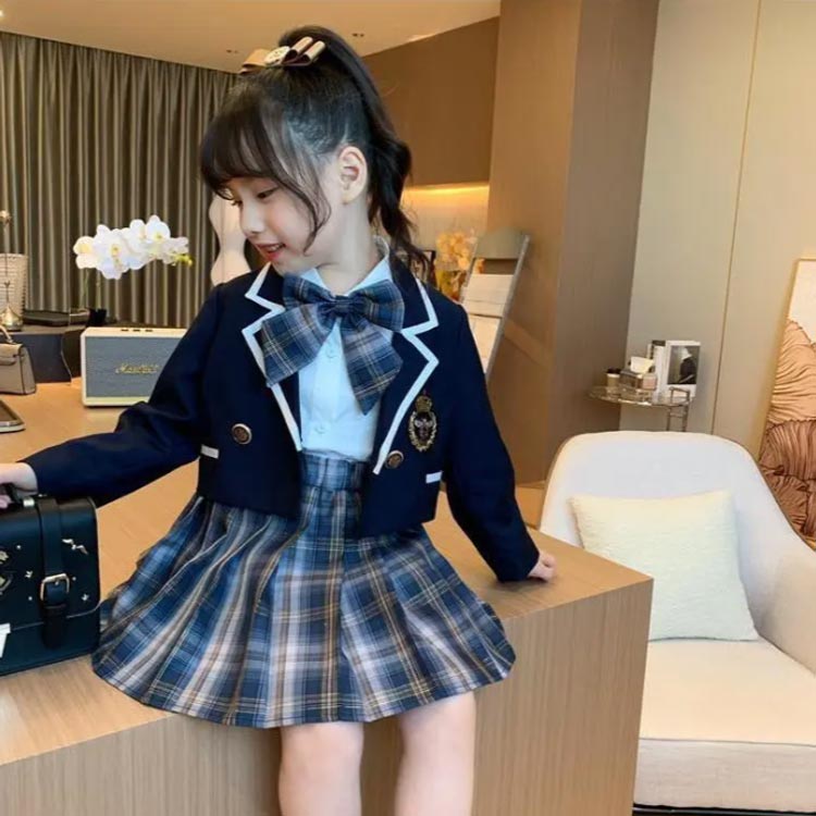 【商品内容】ジャケット+チェック柄スカート+シャツ3点セット。