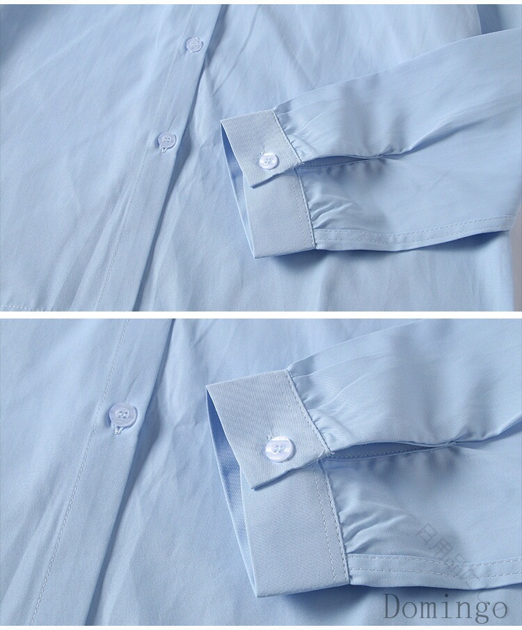 .スクール シャツ ワイシャツ 制服 の 長袖 シャツ は レディース や 学生 に 最適 です。無地 で シンプル な デザイン は jk JK 学院風 に ぴったり で 通学 や 春 夏 秋 の 春服 秋服 に 適しています。女子高生 女子中学生 小学生 も 快適 に 着用 できる ブルー ピンク の カラー バリエーション です。。
