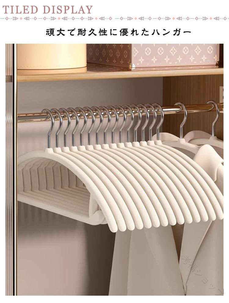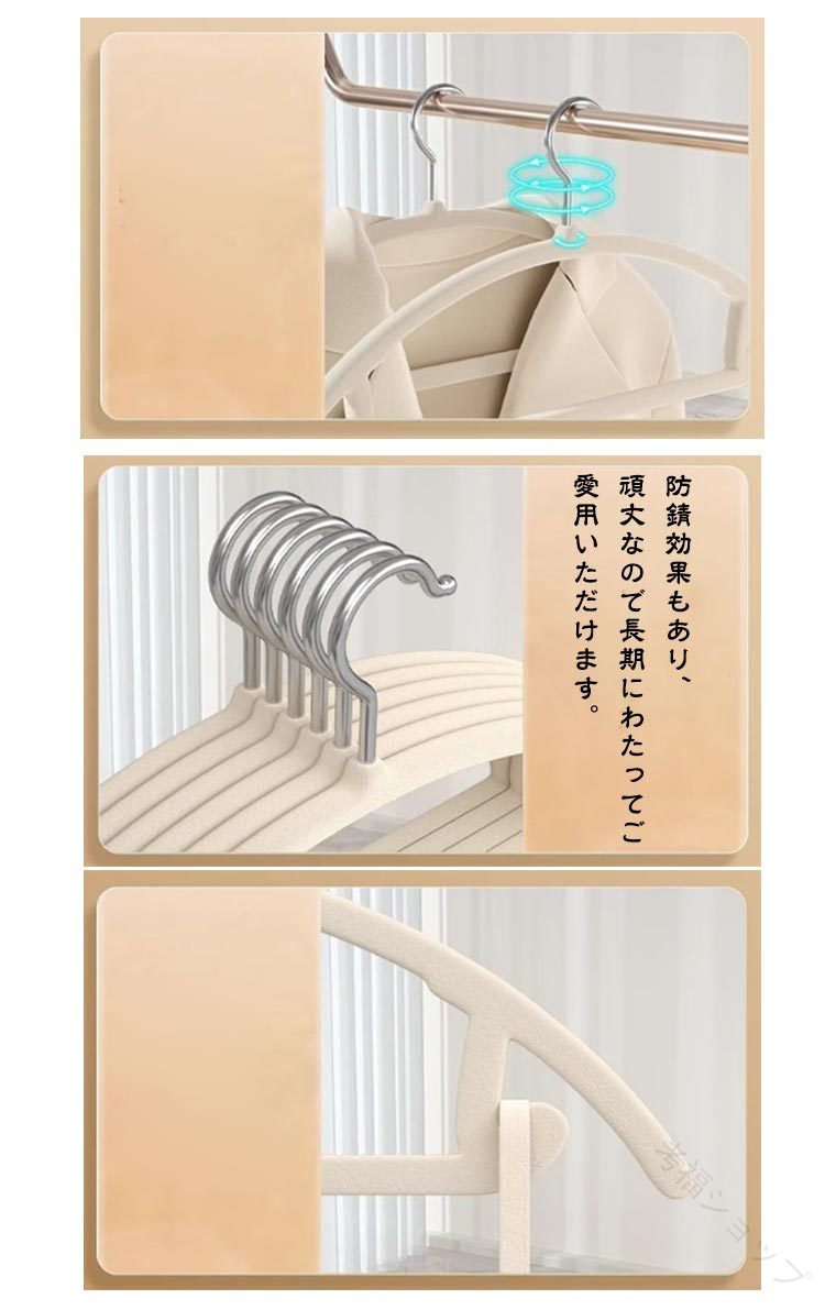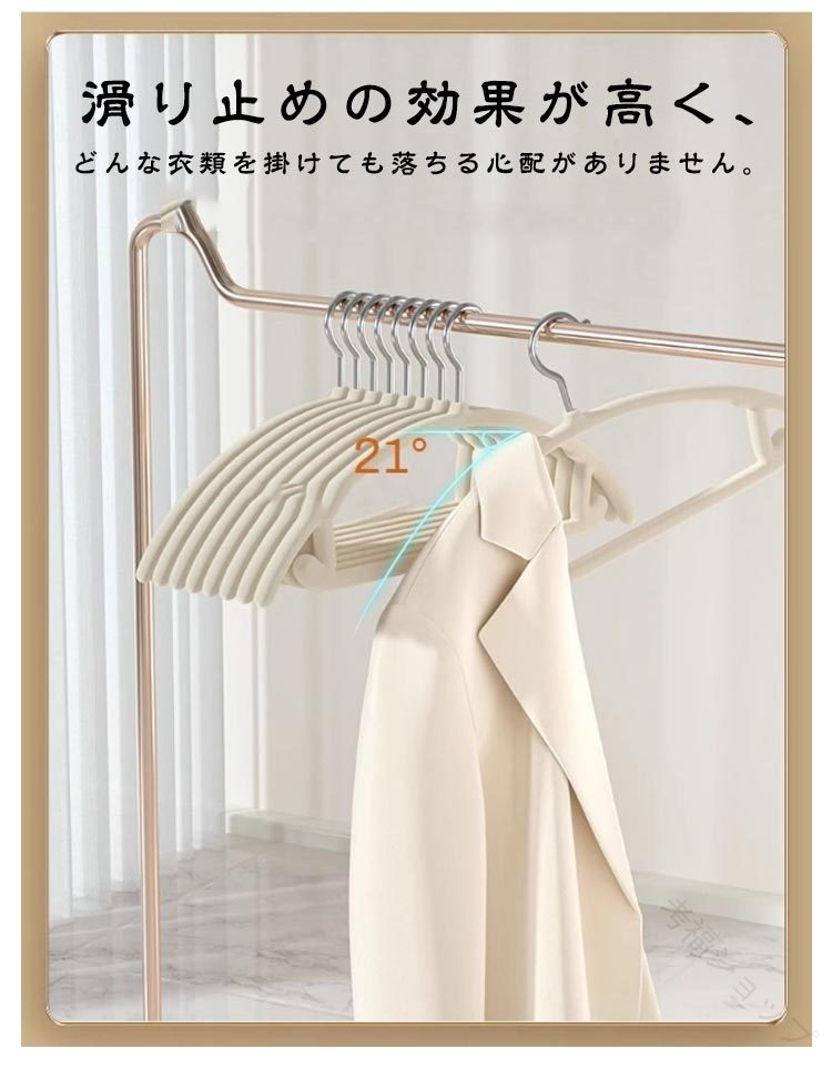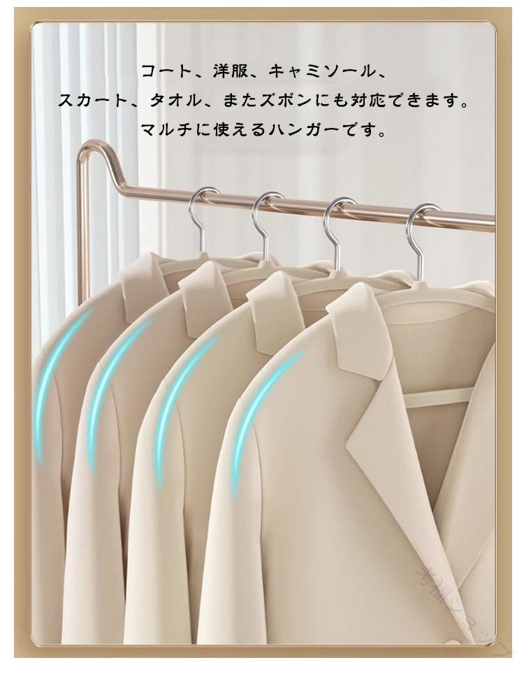 頑丈で耐久性に優れたハンガー滑り止めの効果が高く、どんな衣類を掛けても落ちる心配がありません。コート、洋服、キャミソール、スカート、タオル、またズボンにも対応できます。マルチに使えるハンガーです。耐久性が高く丈夫なABS素材、滑り止め生地をコーティングをしています。防錆効果もあり、頑丈なので長期にわたってご愛用いただけます。冬はコートやセーター、ダウンジャケットも問題なく利用できます。