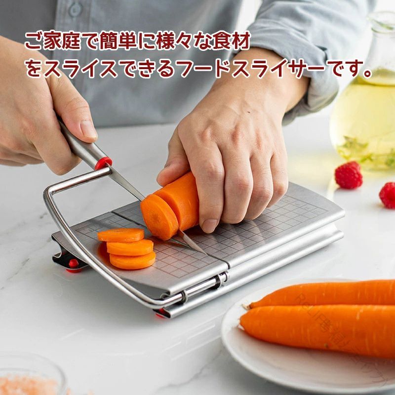 メイン素材:ステンレス鋼サイズ:21*12.8cm重量:約0.47kgご家庭で簡単に様々な食材をスライスできるフードスライサーです。微凍結肉・ハム・チーズ・パンなど幅広い食材を簡単にスライス!※出荷前全数検品をし万全を期しておりますが、万が一商品は何か問題がありましたら、ご連絡お願いたします。