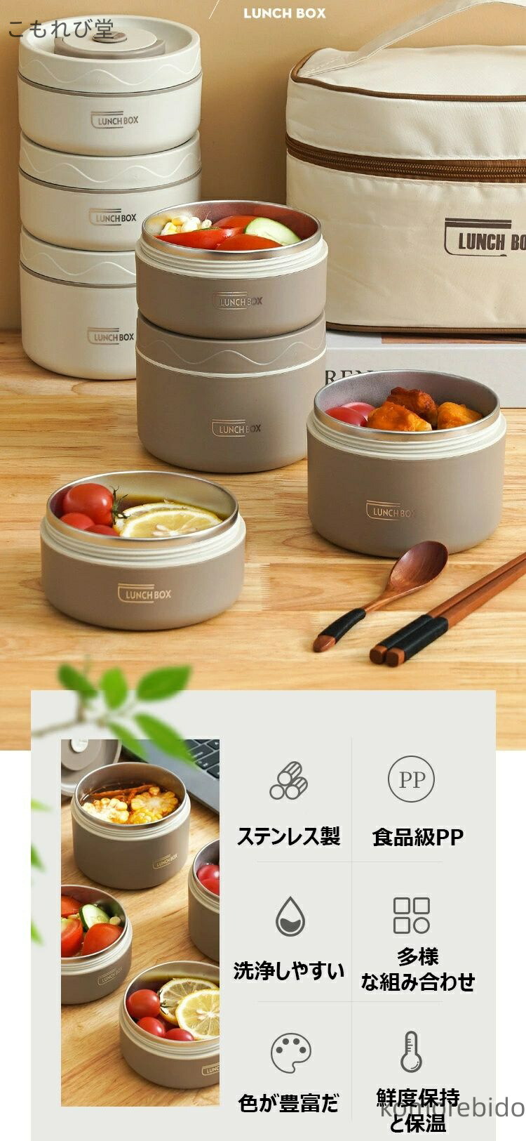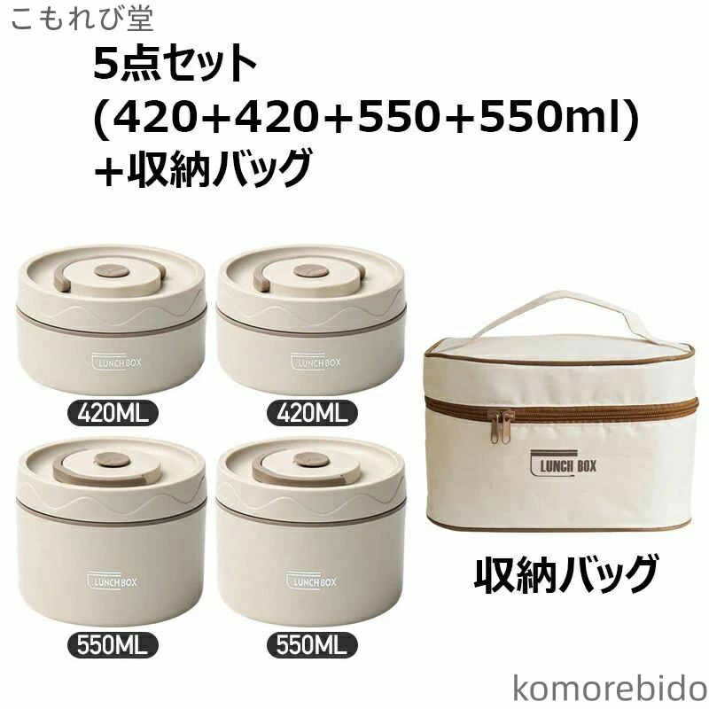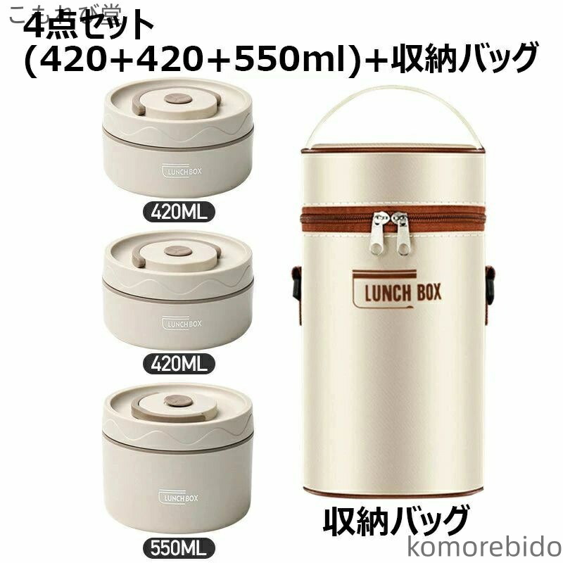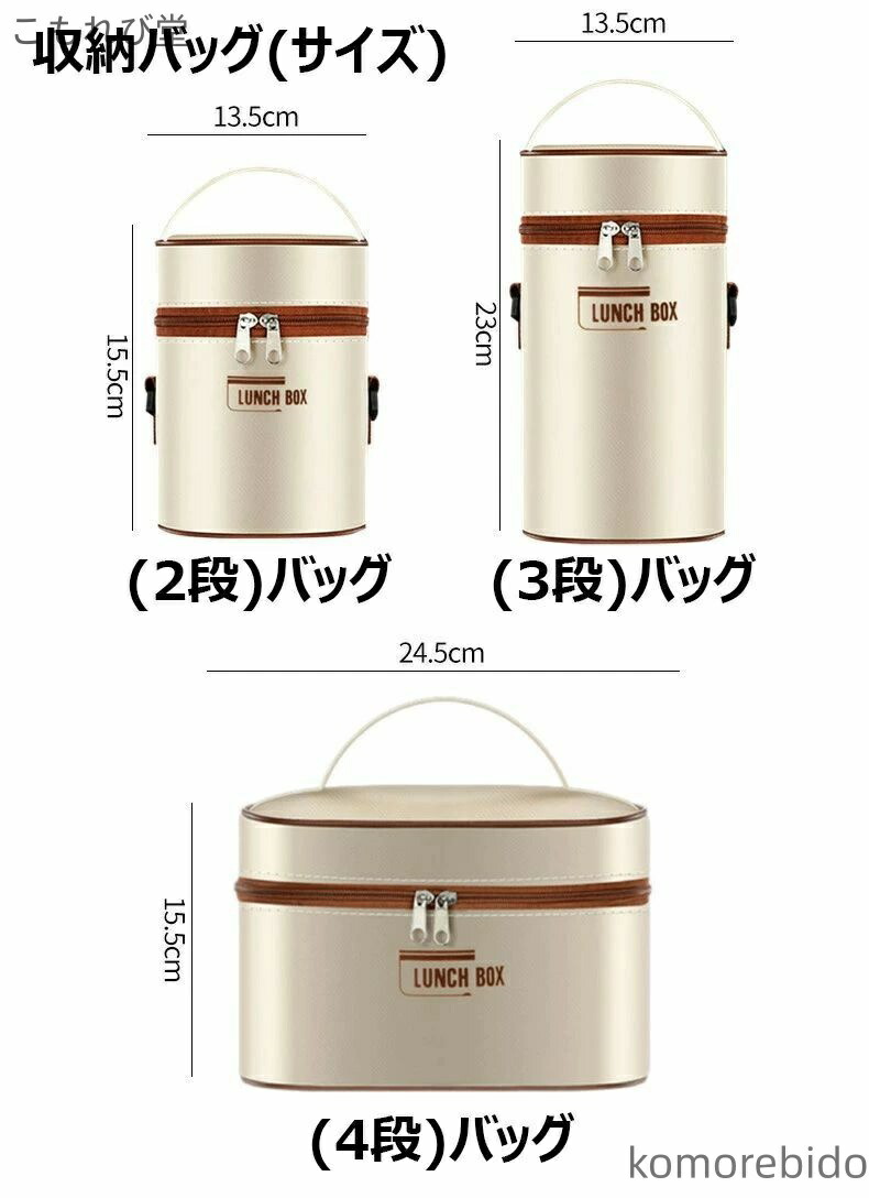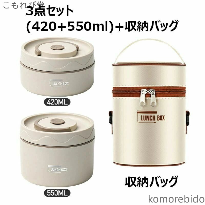 漏れ防止 保温バッグ付き ステンレス製 弁当箱 水筒 弁当箱 人気 ベージュ ブラウン ブルー 2段(3点セット) 3段(4点セット) 4段(5点セット)
