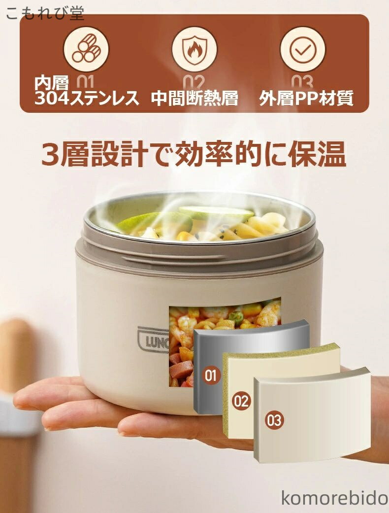 漏れ防止 保温バッグ付き ステンレス製 多層 真空断熱スープランチ 断熱弁当箱セット 保温ランチジャー お弁当箱