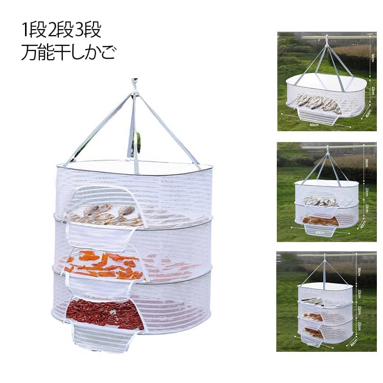 万能干しかご 虫除けネット 干しかご 乾燥 防虫 ほしかご ドライフルーツ 干物 一夜干し 干し網 2段 3段 1段 魚 折り畳み 野菜干し 乾物ネット 網 ファスナー付き 天日干し
