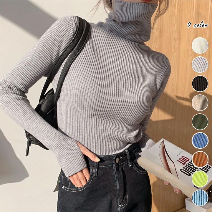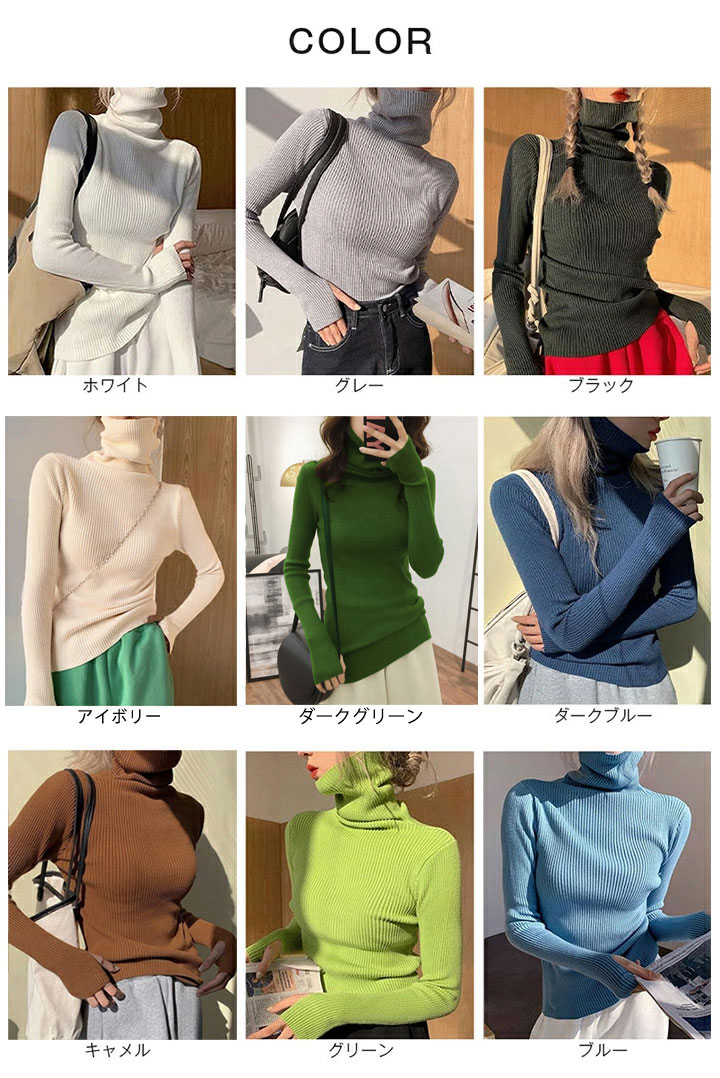 3B18タートルネック リブニット セ レディースファッション 早い者勝ち ホワイト グレー ブラック アイボリー ダークグリーン ダークブルー キャメル グリーン ブルー
