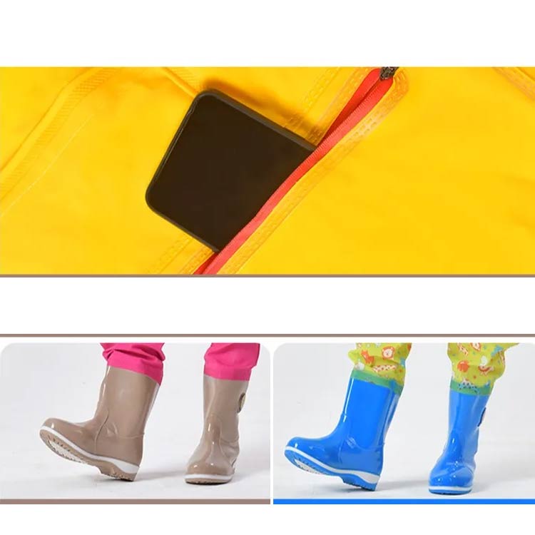足から胸までを覆う部分に防水性・撥水性の高い生地が使われており、履くだけで体が濡れるのをしっかり防ぐことができます。