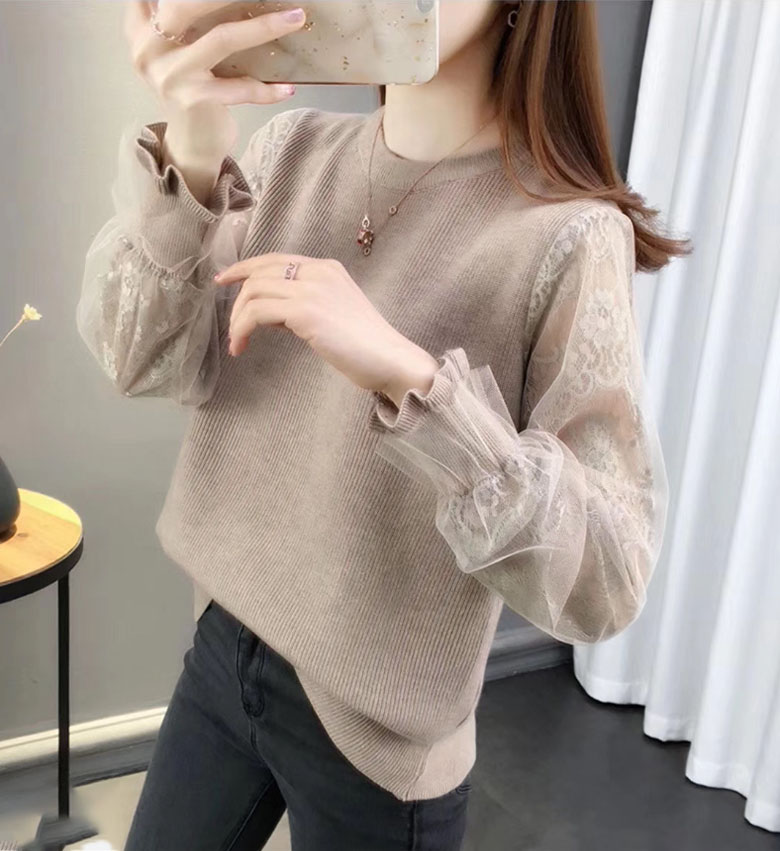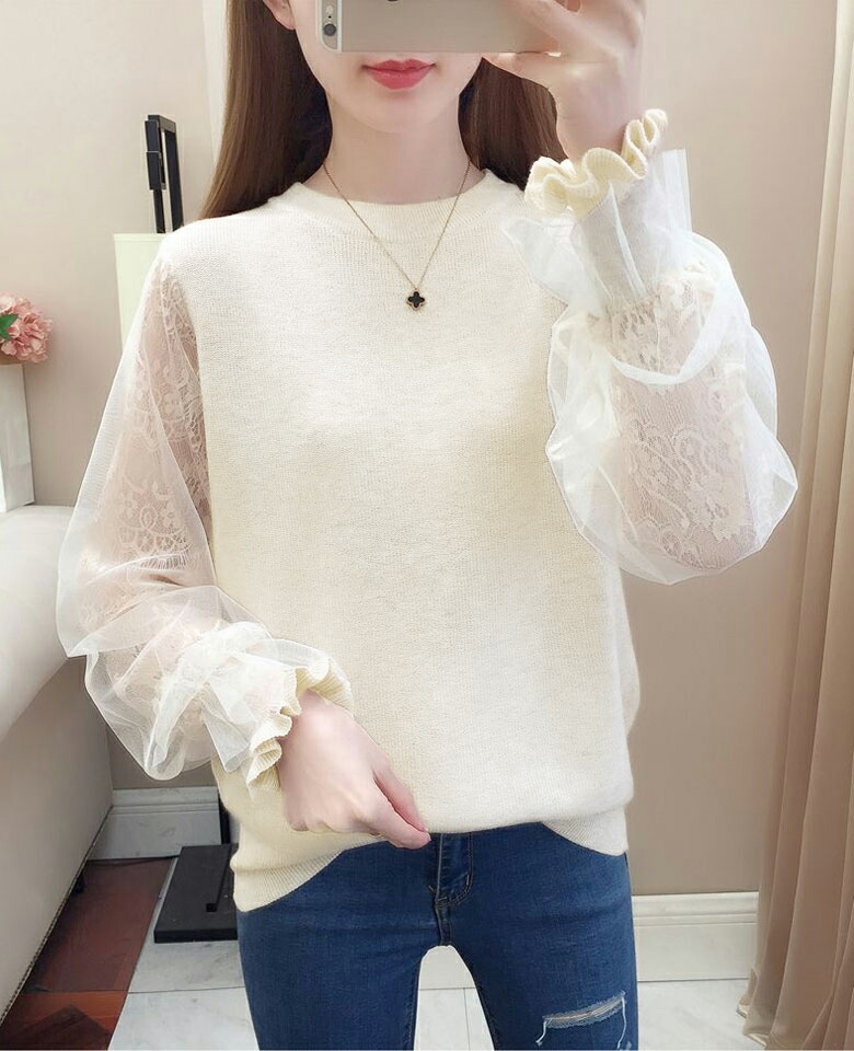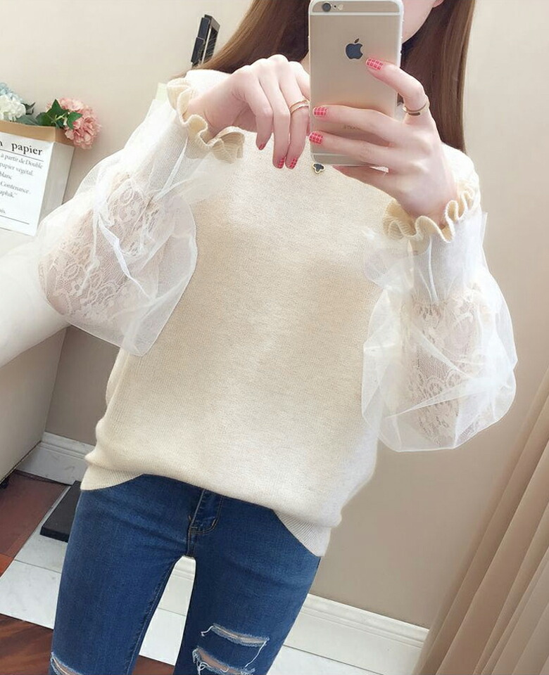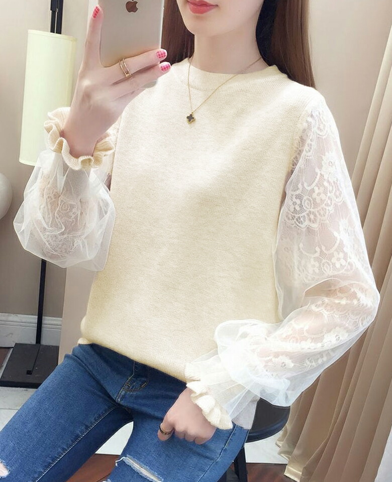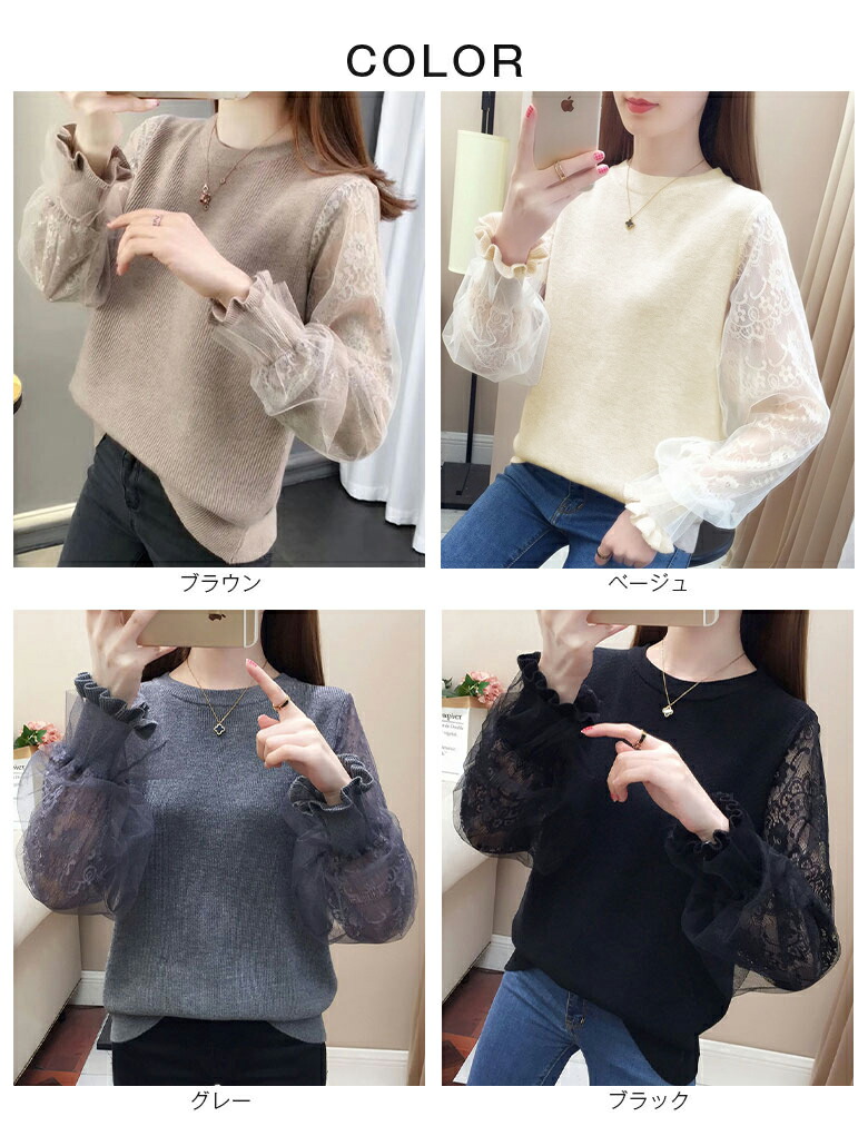 3B20 チュール袖 切り替え ニット レディースファッション 豊富 ブラウン ベージュ グレー ブラック