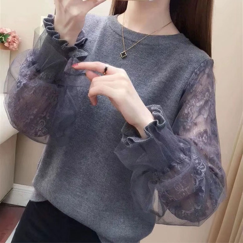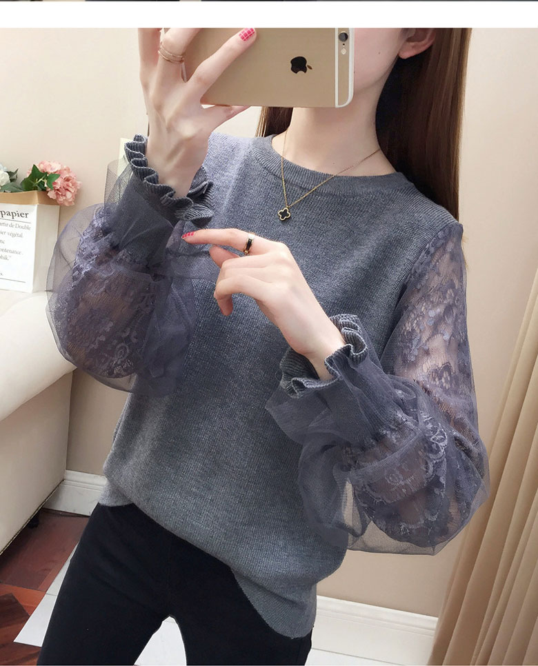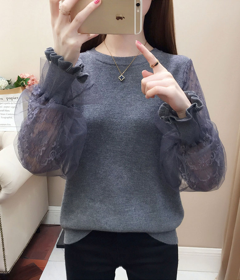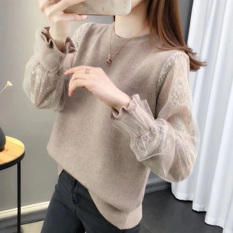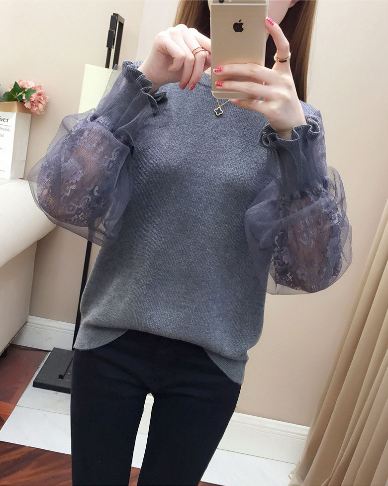 3B20 チュール袖 切り替え ニット レディースファッション 豊富 ブラウン ベージュ グレー ブラック
