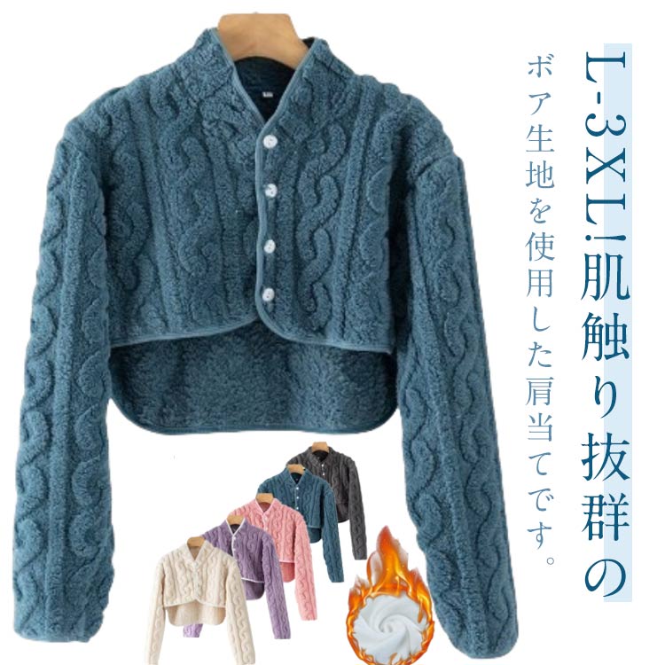 肩当て 寝具 襟付き 長袖 レディース オフホワイト グレー ブルー ピンク パープル L XL 2XL 3XL