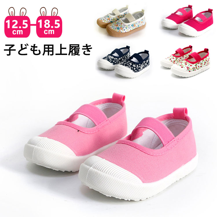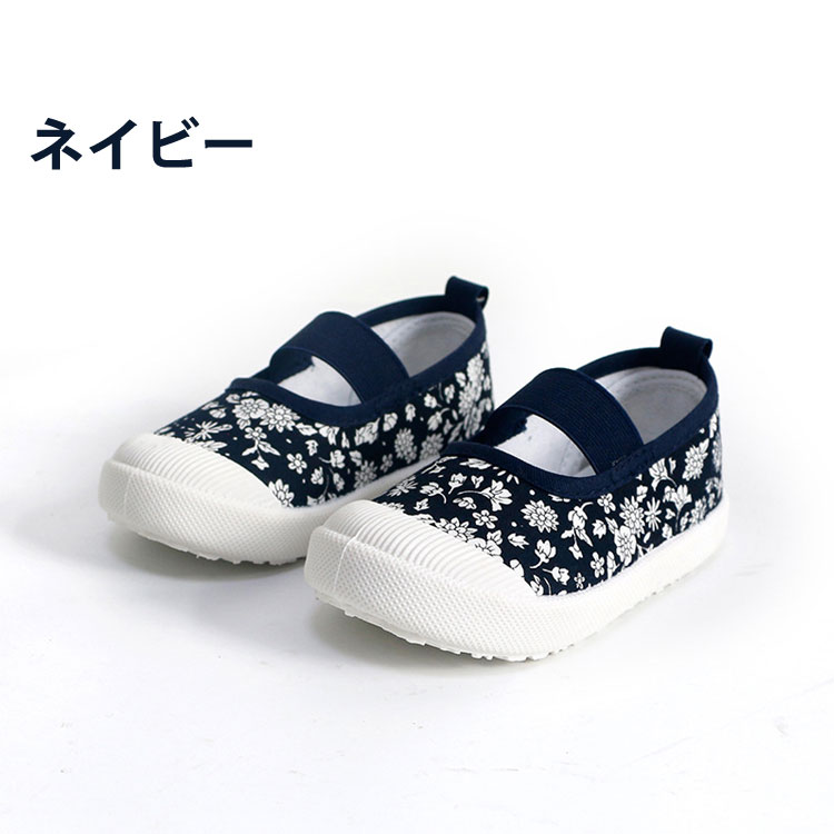 子供上履き女の子うわぐつベビーうわばき上履き上靴キッズ室内履き子供スクールシューズ小花柄ピンクネイビー室内小学校幼稚園保育園新入学新入園面接ゴムバンド屋内シューズ子供靴洗える12.5cm-19cm