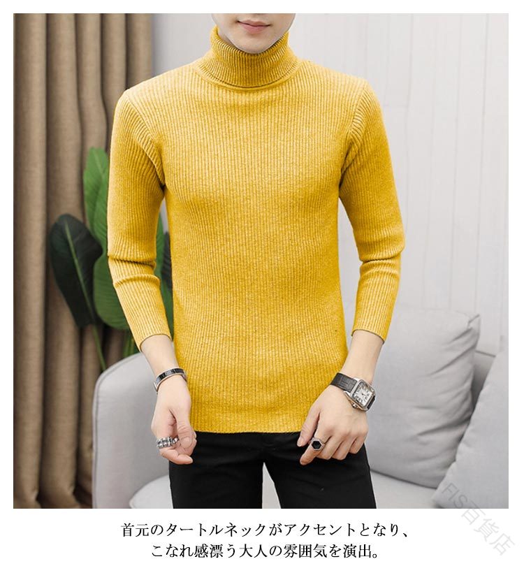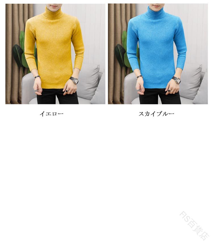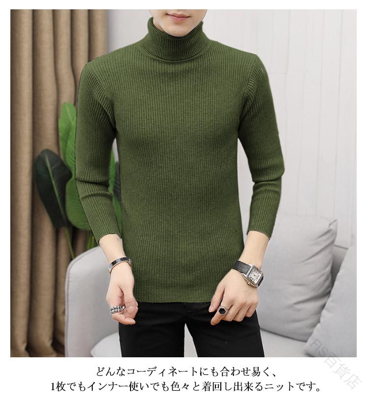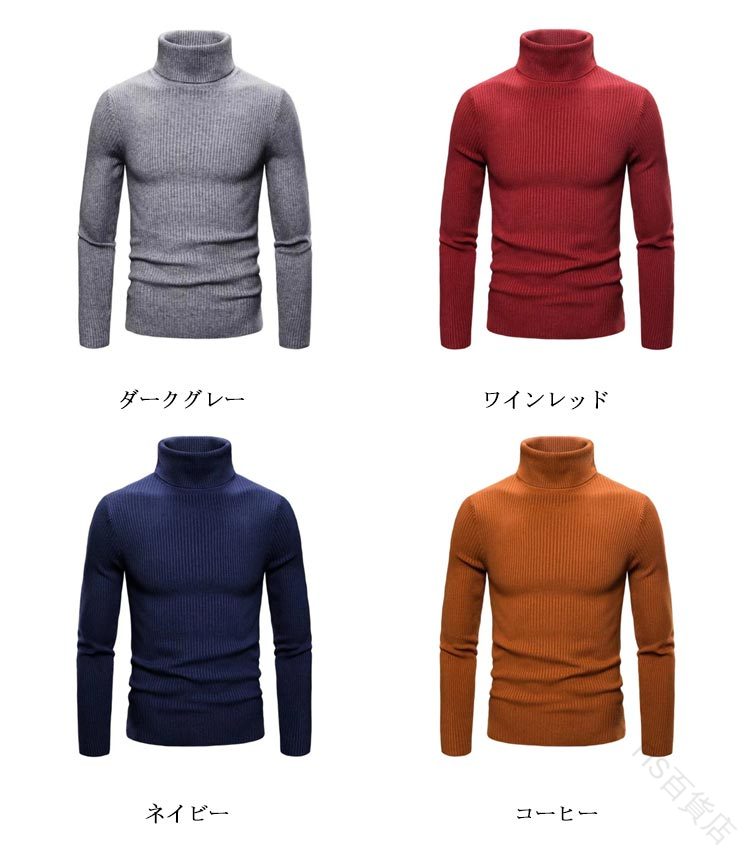 1. メンズ スリム ケーブル編み ハイネック ニットトップ 冬 防寒 おしゃれ 2. 無地 タートルネック 秋冬 インナー サイズ対応 暖かい リブ編み ニット スリムフィット ケーブル 3.