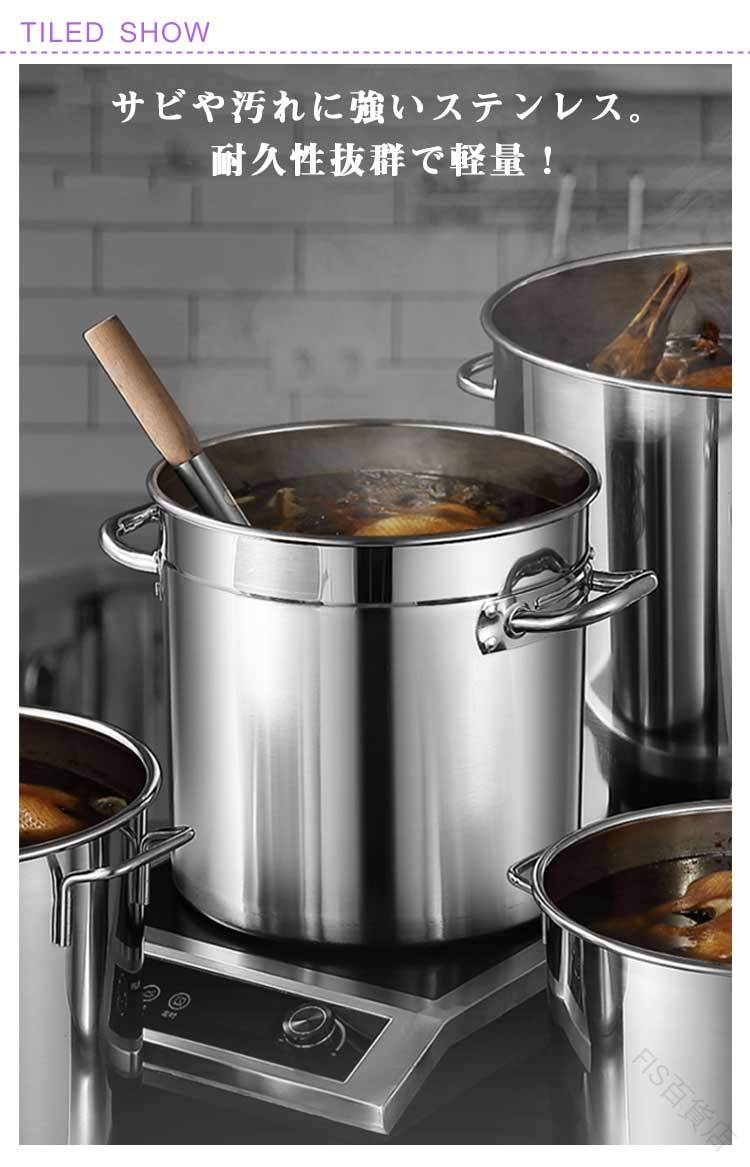 店舗運営・イベントに!IH対応の業務用ステンレス寸胴鍋です。サビや汚れに強いステンレス。耐久性抜群で軽量!ガスコンロやIHなどその他の様々な熱源で使用が可能で御座います。スープや煮込み料理など様々な調理に!