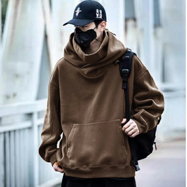 秋服 メンズ ボリュームネックパーカー トップス パーカー 続々登場 ブラウン グレー ブラック M L XL 2XL 3XL