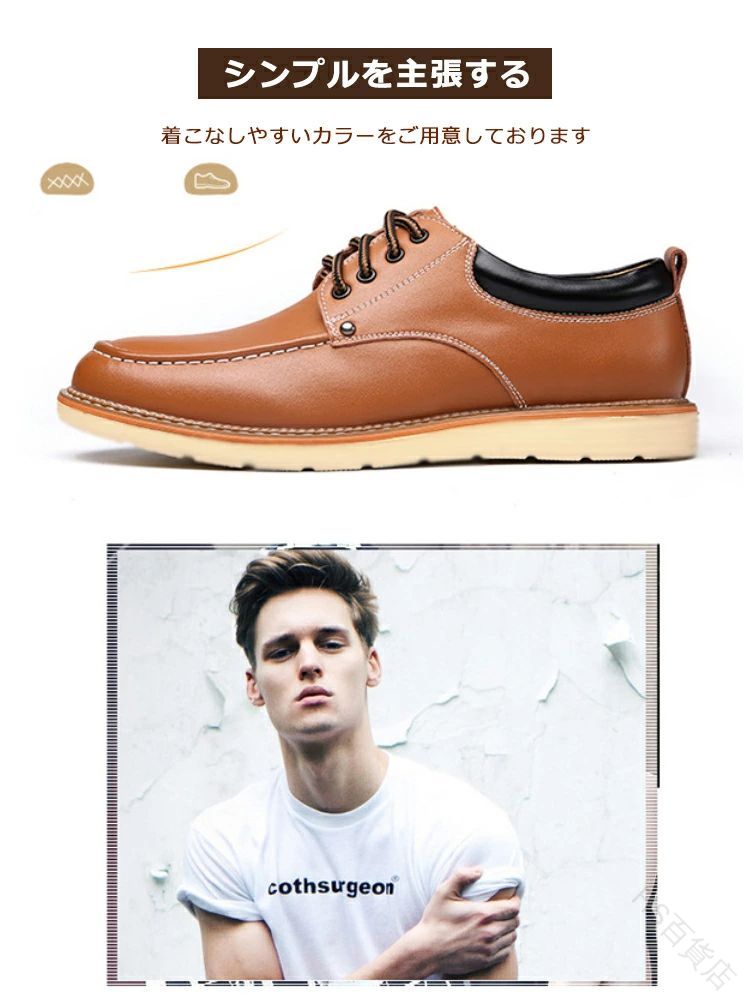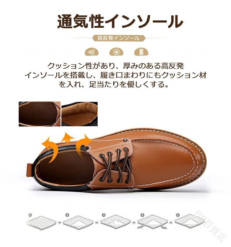 素材:革 ◆疲れにくく歩きやすい多機能ビジネスシューズ。 ◆撥水で雨に強く、防滑で滑りにくいコスパに優れたビジネスシューズです! ◆機能:カップインインソール(着脱楽楽)、撥水アッパー、ハイグリップ(防滑)、屈曲性、衝撃吸収(高反発インソール)、足底マッサージ。 メンズシューズ シークレット シューズ ビジネスシューズ メンズ カジュアル 革靴 スリッポン 紳士靴 ※要確認:輸入品のため、納期に目安約10日~15日程度頂きます。 お急ぎの場合は事前にお問い合わせ下さい。予めご了承ください。 ◆商品写真はできる限り実物の色に近づけるよう加工しておりますが、お客様のお使いのモニター設定、お部屋の照明等により実際の商品と色味が異なる場合がございます。 ◆靴ひもは、形状等が相違されたものに変わる可能性があります。