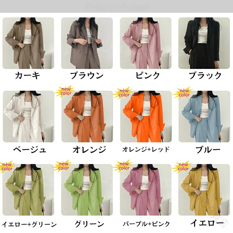 2色スーツ レディース パンンツスーツ レディースファッション 通販 カーキ2点セット ブラウン2点セット ピンク2点セット ブラック2点セット ベージュ2点セット オレンジ2点セット オレンジ+レッド2点セット ブルー2点セット イエロー+グリーン2点セット グリーン2点セット パープル+ピンク2点セット イエロー2点セット S M L LL 3L 4L