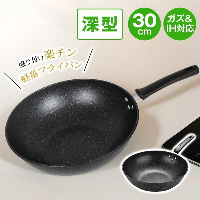 深型フライパン 30cm 軽量炒め鍋 グリル調理器 耐摩耗性丈夫仕様 中華炒め料理用 父の日ギフト キッチン調理器具