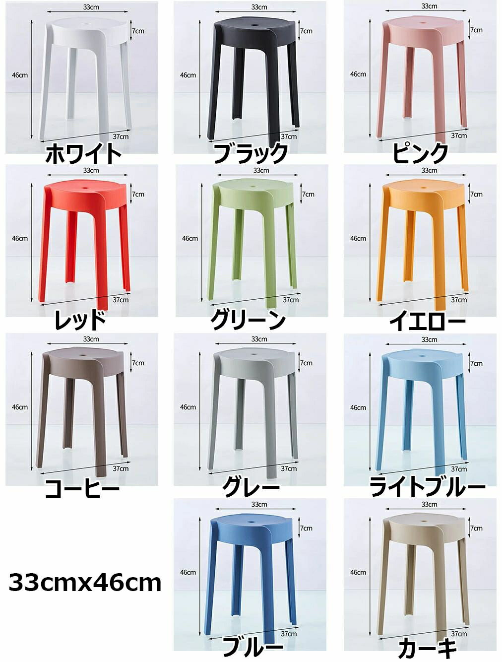 スタッキングチェア 浴室イス お風呂 ホワイト ブラック ピンク レッド グリーン イエロー コーヒー グレー ライトブルー ブルー カーキ 1個 30cm 2個セット 30cm 4個セット 30cm 1個 33cm 2個セット 33cm 4個セット 33cm