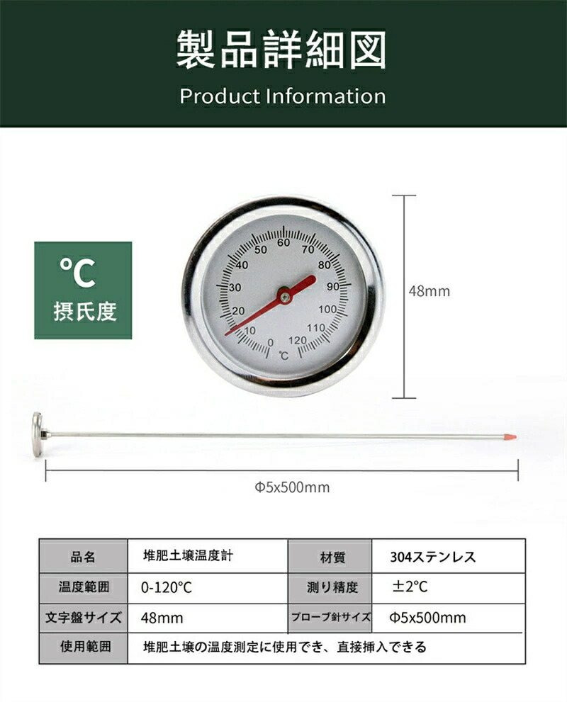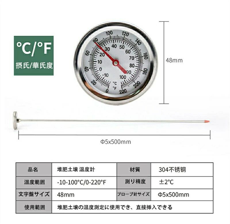 50cm ステンレス鋼 堆肥土壌 温度 0-120℃ -10-100℃/0-220?