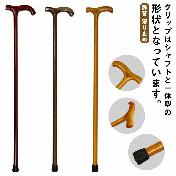 杖 ステッキ 木製 一体型 1本杖 軽量 静音 滑り止め シニア お年寄り 敬老の日 ギフト プレゼント 女性用 男性用 低身長 父の日 祖父 祖母 おしゃれ 無地 丈夫 軽い つえ 介護 高齢 太め