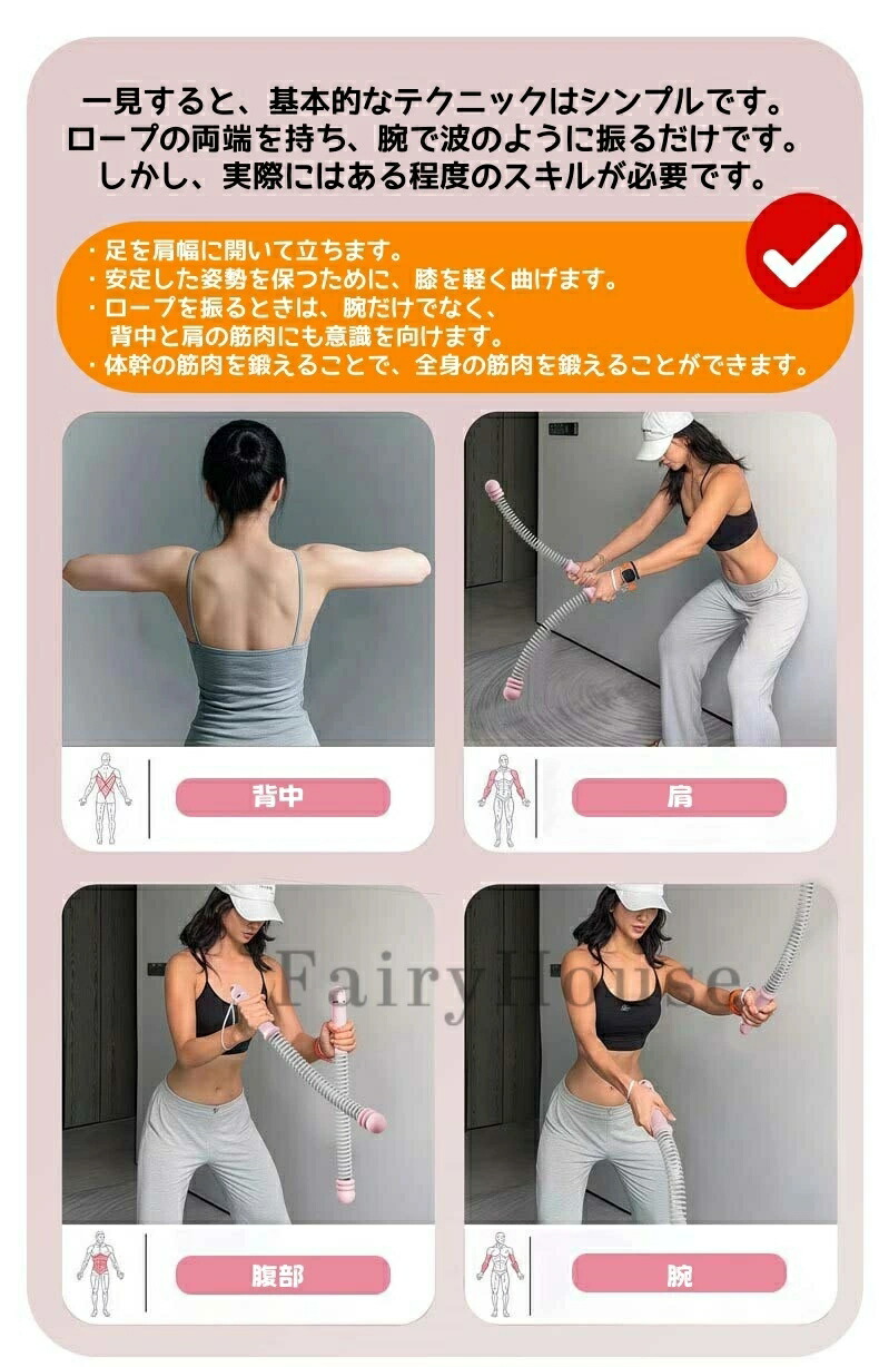 内蔵の高強度スチールスプリングが、ロープの力強い波のような動きをリアルに再現します。高い弾力性と強力な反発力により、腕、肩、背中、体幹、脚を刺激します。さらに、外層は耐久性の高いシリコンで保護されているため、長期間使用しても変形しにくく、優れた耐久性を実現しています。