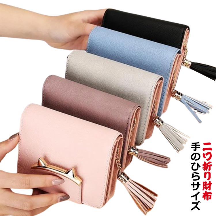 二つ折り財布 財布 ねこ財布 中学生 バッグ 小物 ブランド雑貨 超目玉商品 ブルー ブラック ピンク パープル グレー