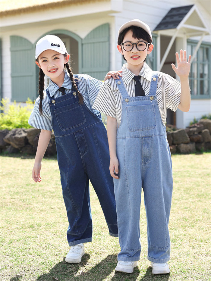 100cm-180cm 単品 ダンス衣装 オーバーオール カジュアル デニム サロペット シャツ ジュニア 子供服 女の子 男の子 幼稚 無地