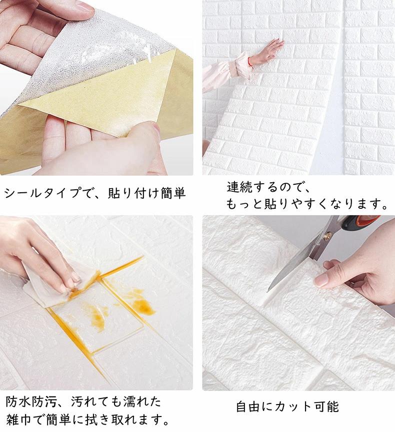 カット可能 超大判 断熱 幅70cm全長5m 3D壁紙 防音シート 3D 自己粘着 DIY レンガ調 クッションシート 大判ウォールステッカー
