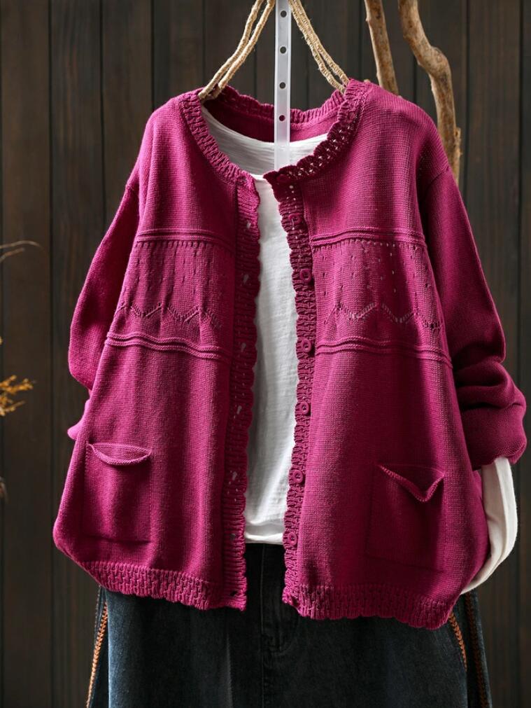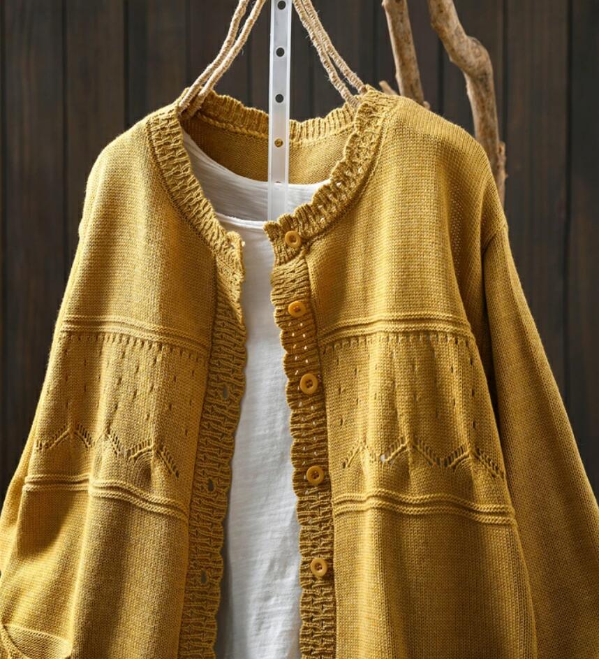 秋春 カジュアル ゆったり 柔らか ナチュラル 大きいサイズ 大人可愛い ニットカーデ 羽織り ライトアウター キレイめ コットン
