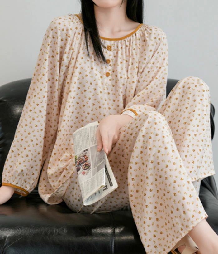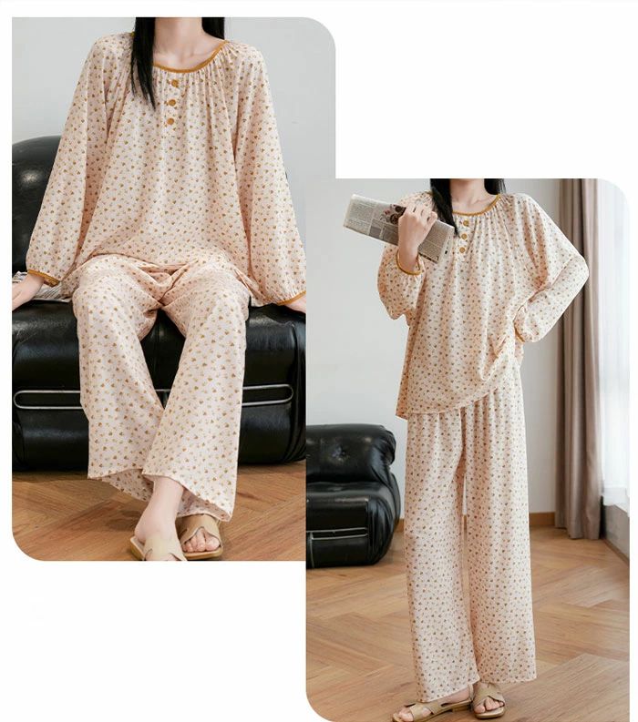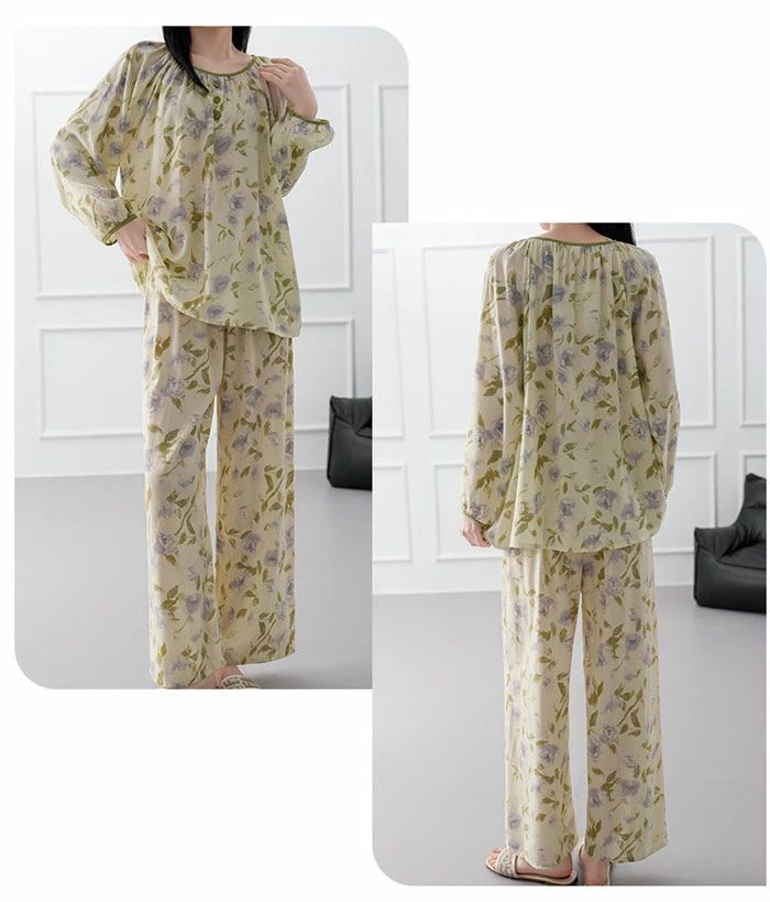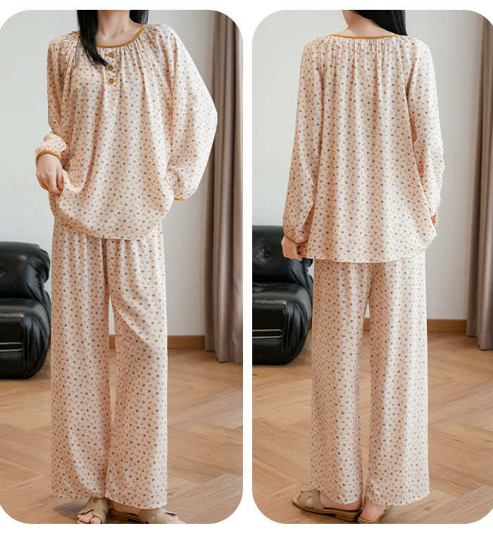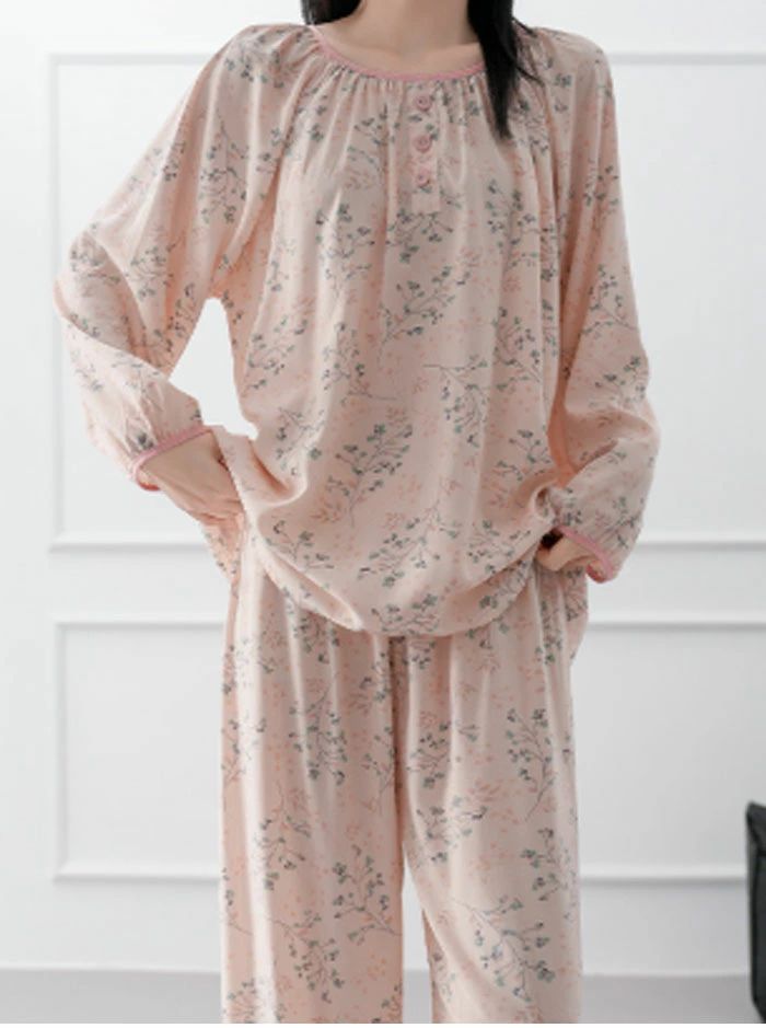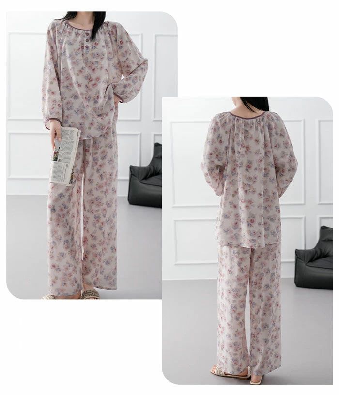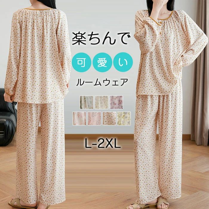 ルームウエアパジャマプルオーバーレディース女性用綿部屋着セットアップ上下セットナイトウエア長袖ふんわりやわらかお肌にやさしい上品春秋オールシーズン洗える通気性吸湿性肌に優しい柔らかい大きいサイズ