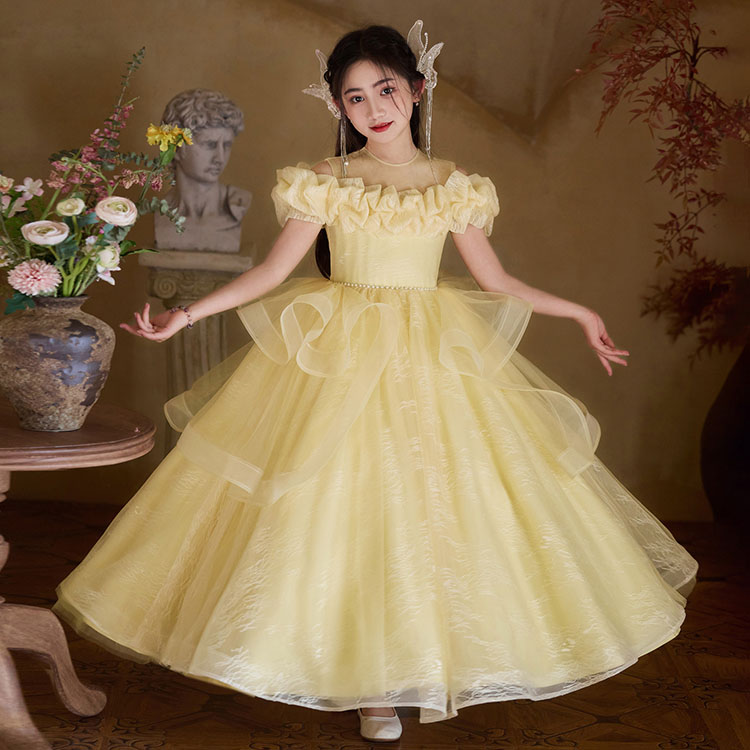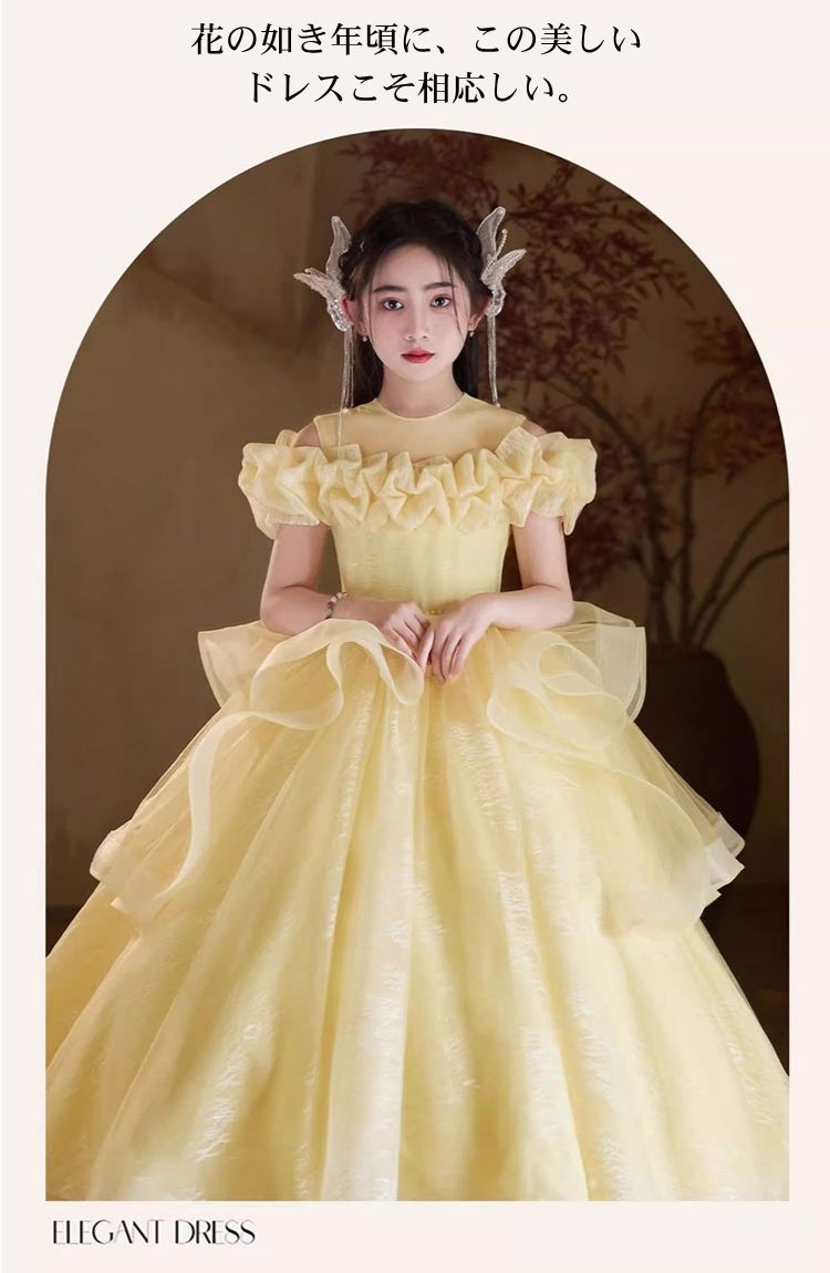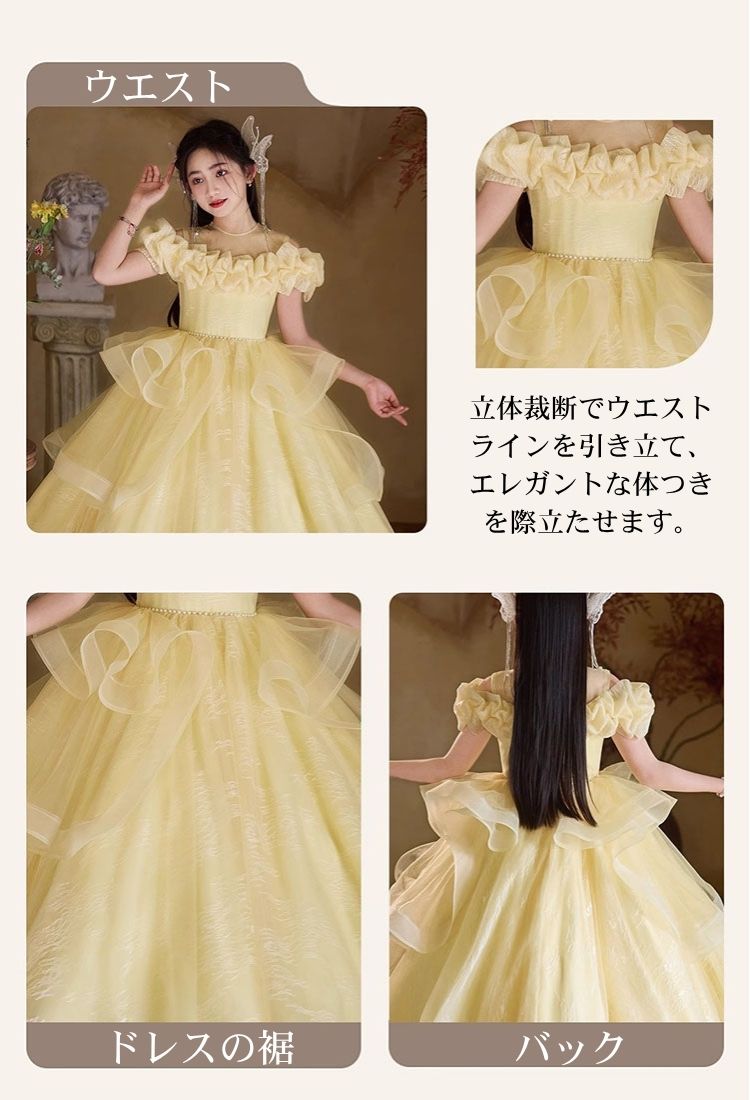 イエロー 黄色 子供 ロングドレス キ キッズ ベビー マタニティ 新作 100 110 120 130 140 150 160