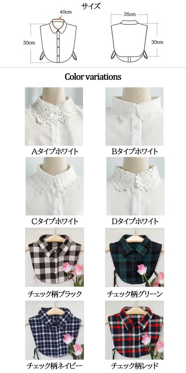 1A18.19付け襟 レース 14タイ 付け襟 続々登場 タイプA(ホワイト) タイプB(ホワイト) タイプC(ホワイト) タイプD(ホワイト) チェック柄(ブラック) チェック柄(グリーン) チェック柄(ネイビー) チェック柄(レッド) タイプEホワイト タイプEブラック タイプF タイプG(ホワイト) タイプG(ブラック) タイプH タイプIラウンドホワイト タイプIラウンドブラック タイプIレギュラーホワイト タイプIレギュラーブラック タイプJホワイト タイプJブラック