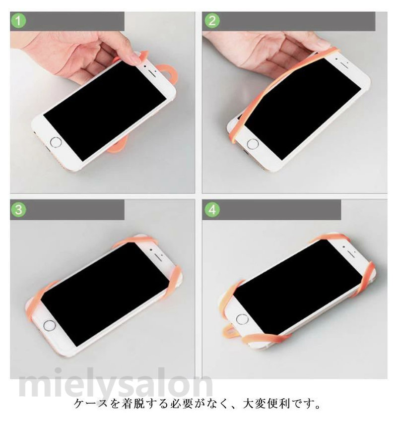 ホルダーのシリコンは伸縮性があるので、スマホにケースをつけたままでも装着が可能です。