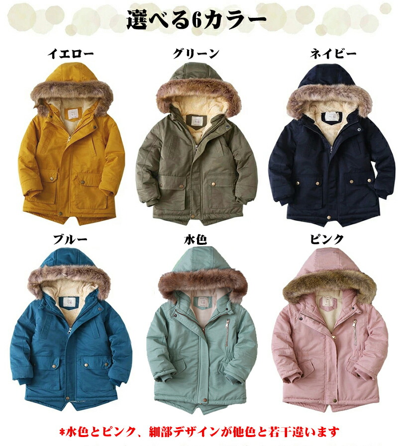 キッズ モッズコート 裏ボア コート キッズ コート ジャケット 続々登場 イエロー グリーン ネイビー ブルー 水色 ピンク 110/身長100cm以下 120/身長110cm以下 130/身長120cm以下 140/身長130cm以下 150/身長140cm以下 160/身長150cm以下