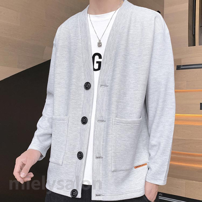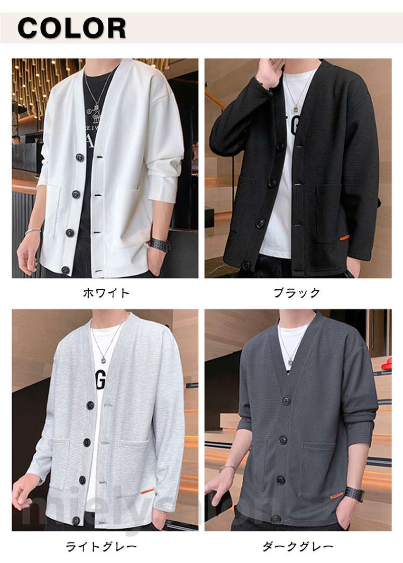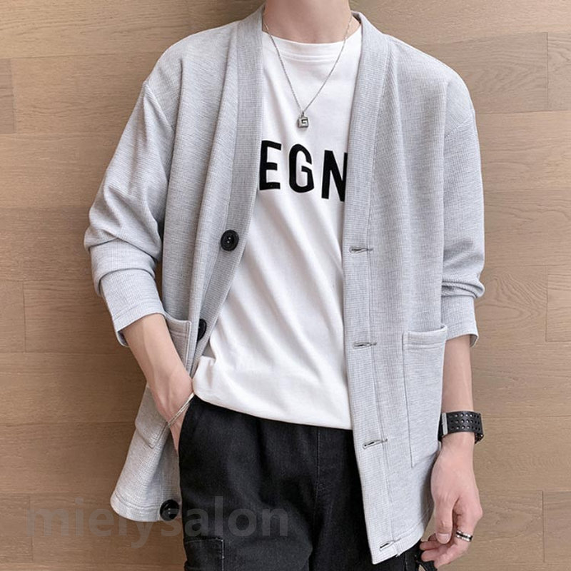 ワッフル ジャケット スウエット カーディガン メンズ ワッフルカーディガン 前開き ライトアウター 羽織り 無地 パーカー 大きいサイズ ボタン留め 男女兼用 薄手 春物 メンズカーディガン コーデ