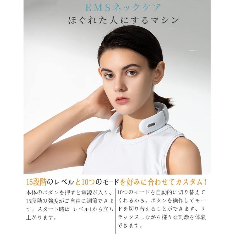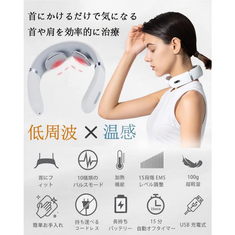 ネックケア リラクゼーション器 ネックリフレッシュ 10種モード 15段階強度 加熱機能 USB充電 父の日 母の日 軽量