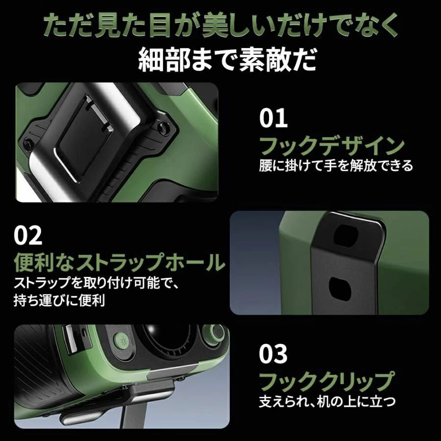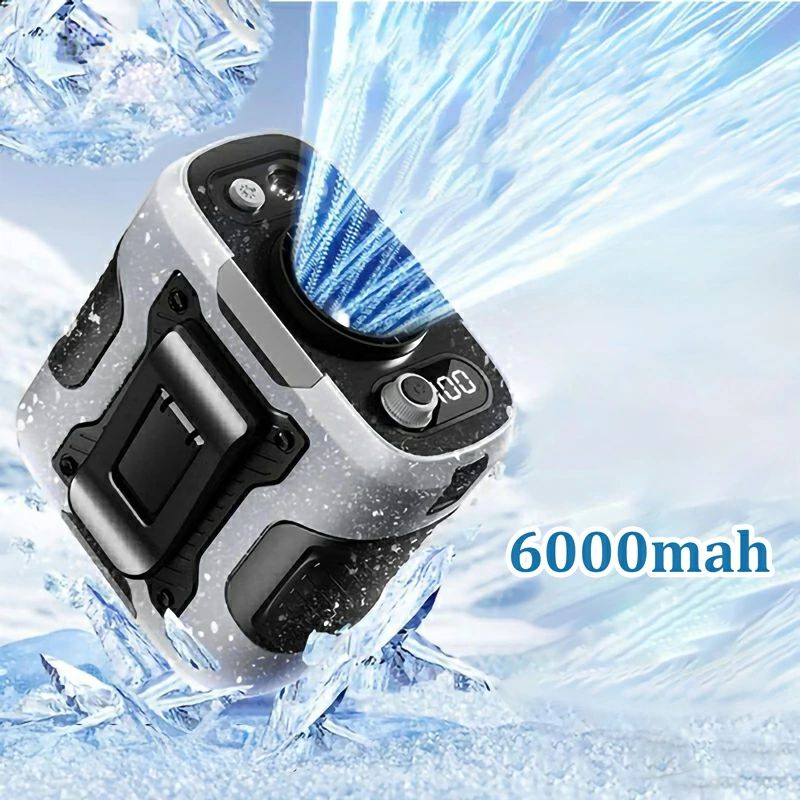 風力は通常の扇風機の10倍に達します。最大12M/Sな送風速度、13500/17000RPM回転速度で3秒ほど360°全身が冷たい風に包まれます。内蔵の6000mAh/8000mAhリチウム電池、弱モードでは約24時間使用可能です。