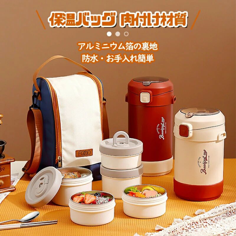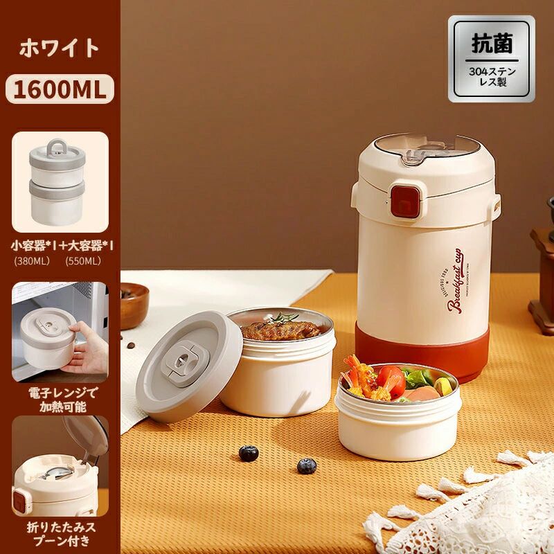 セット内容:ごはん容器(保温容器)、小容器、大容器、スプーン。