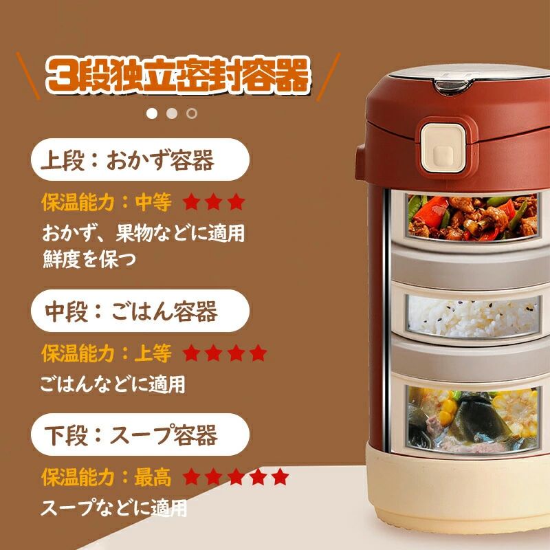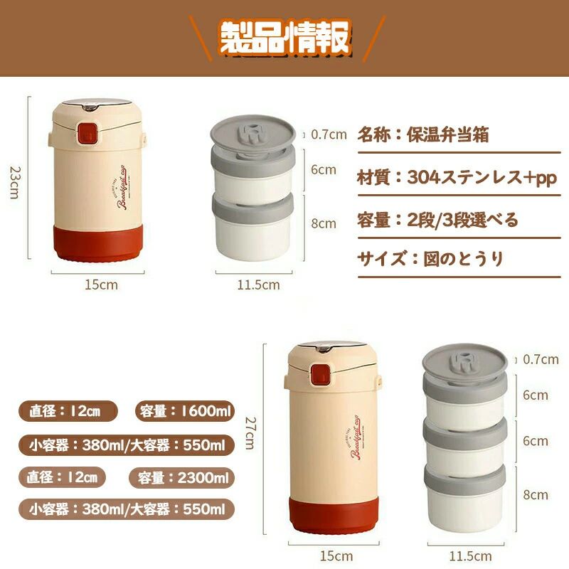 保温弁当箱 弁当箱 大容量 軽量 2段 3段選べる 304ステンレス製 真空断熱 手入れ便利 錆びない 保温保冷
