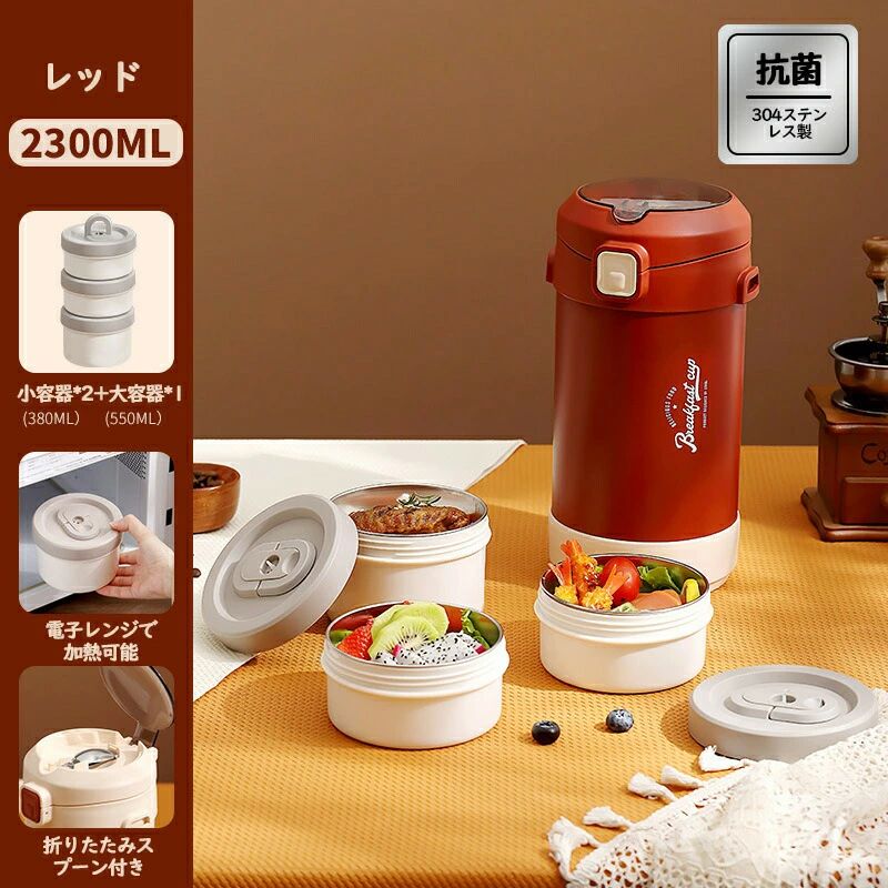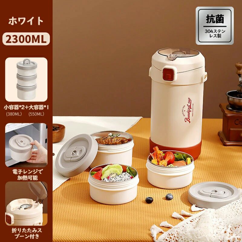 保温弁当箱 弁当箱 大容量 軽量 2段 弁当箱 水筒 保温ランチジャー 通販 ホワイト レッド 1800ml(2段) 2300ml(3段)