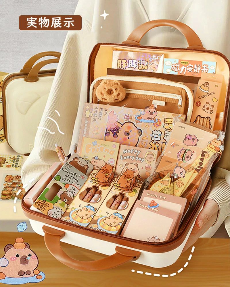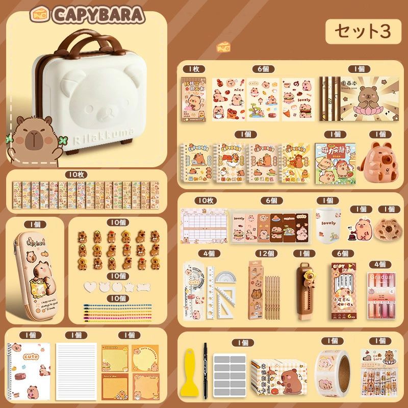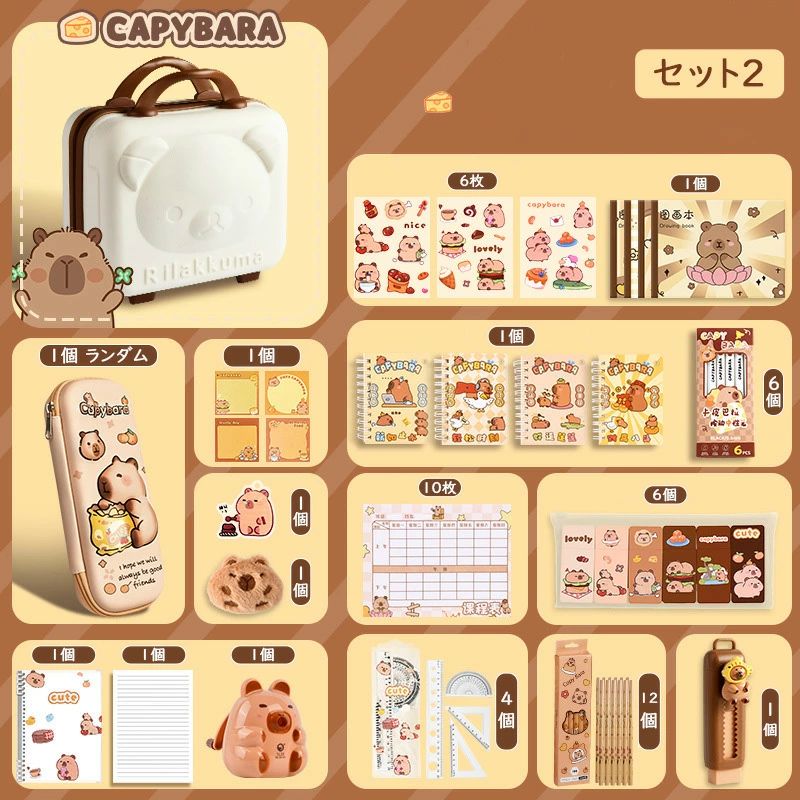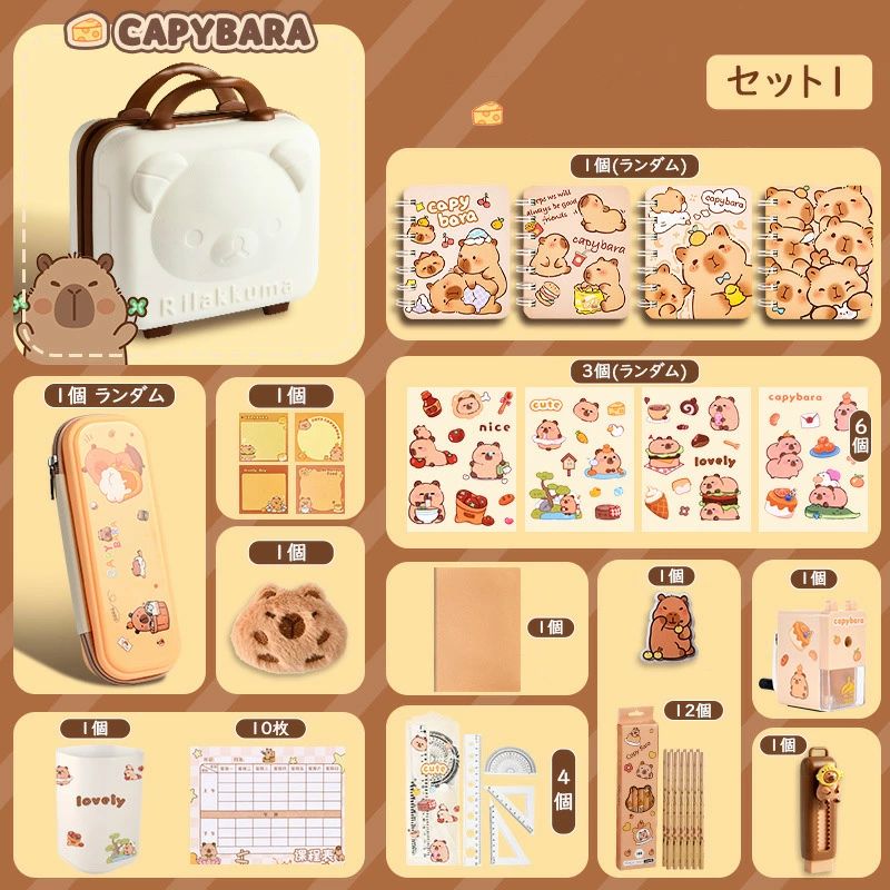 カピバラ文房具セット 超豪華な文房具セット 携帯便利 収納ケース付き 描き用 学習玩具 子供用文房具 鉛筆 定規 消しゴム ハ ボールペン
