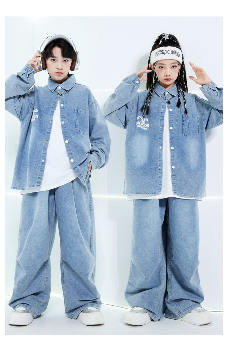 ブルー 韓国 キッズダンス衣装 セット キッズ 体操服 新登場! ジャケット パンツ ジャケット+パンツ 3点セット 120 130 140 150 160 170 180
