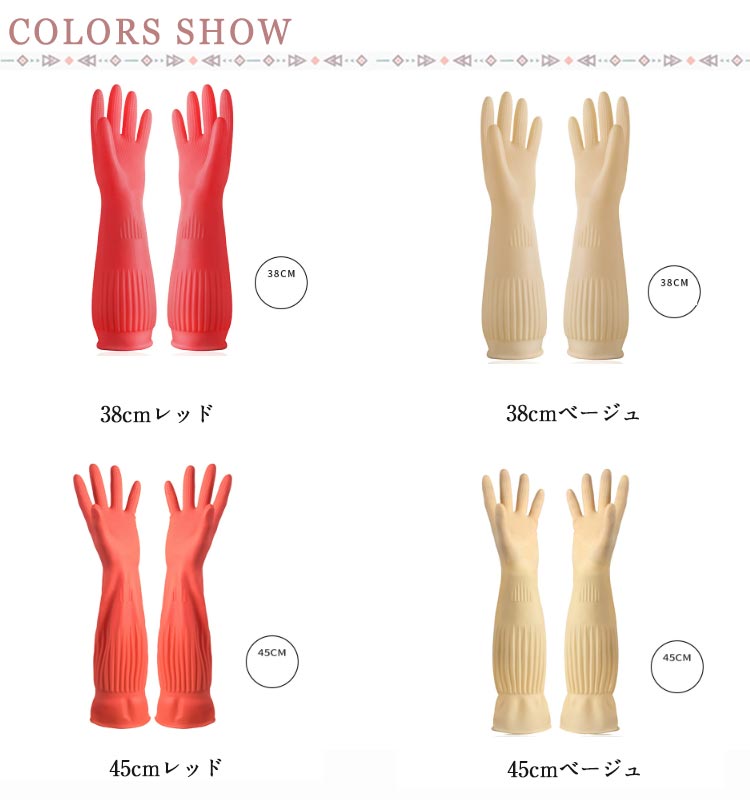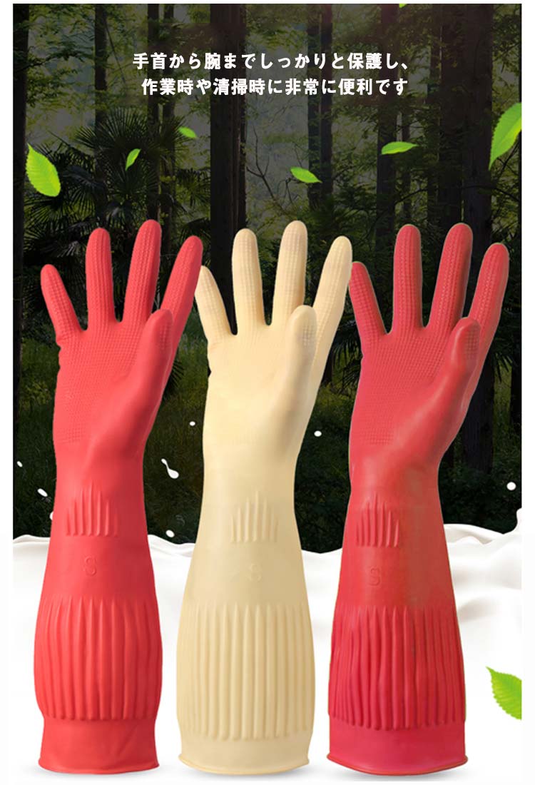 ゴム手袋 ロング 厚手 3双セット 食 生活雑貨 作業用手袋 軍手 ゴム手袋 ビニール手袋 特集 38cmレッド 38cmベージュ 45cmレッド 45cmベージュ S(3双セット) M(3双セット) L(3双セット)