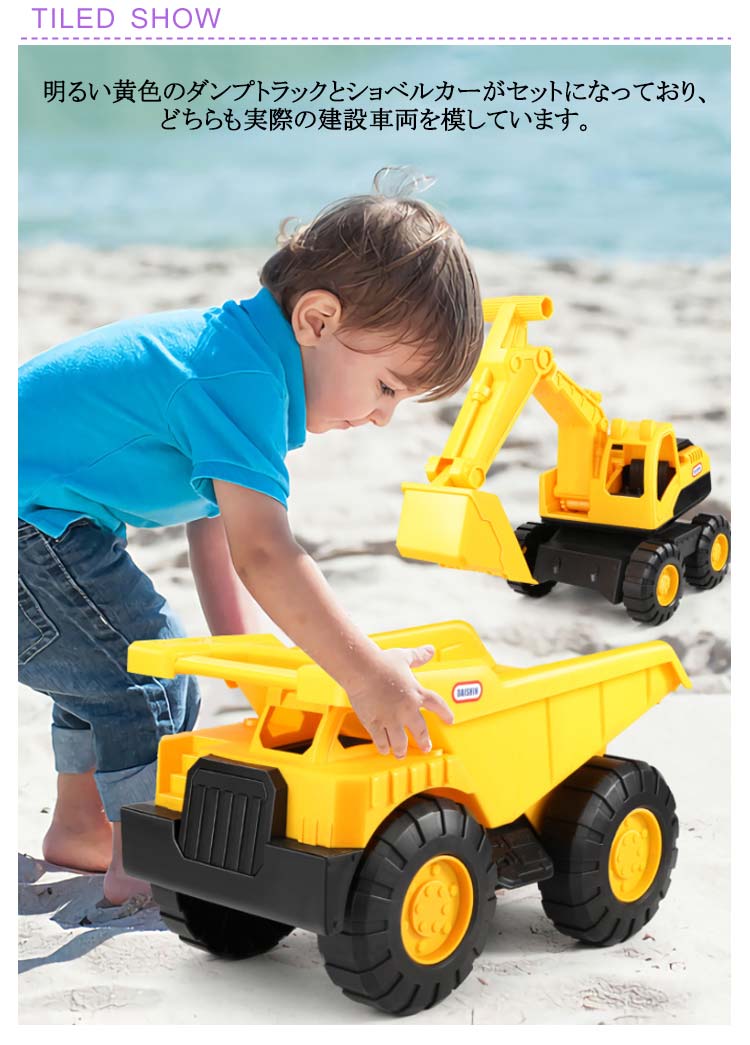 大きいサイズ 働く車 おもちゃ ショベルカー ダンプトラック 慣性車 子供用 建設車両 室内外 砂遊び 雪遊び 知育玩具 女の子 プレゼント ギフト 男の子