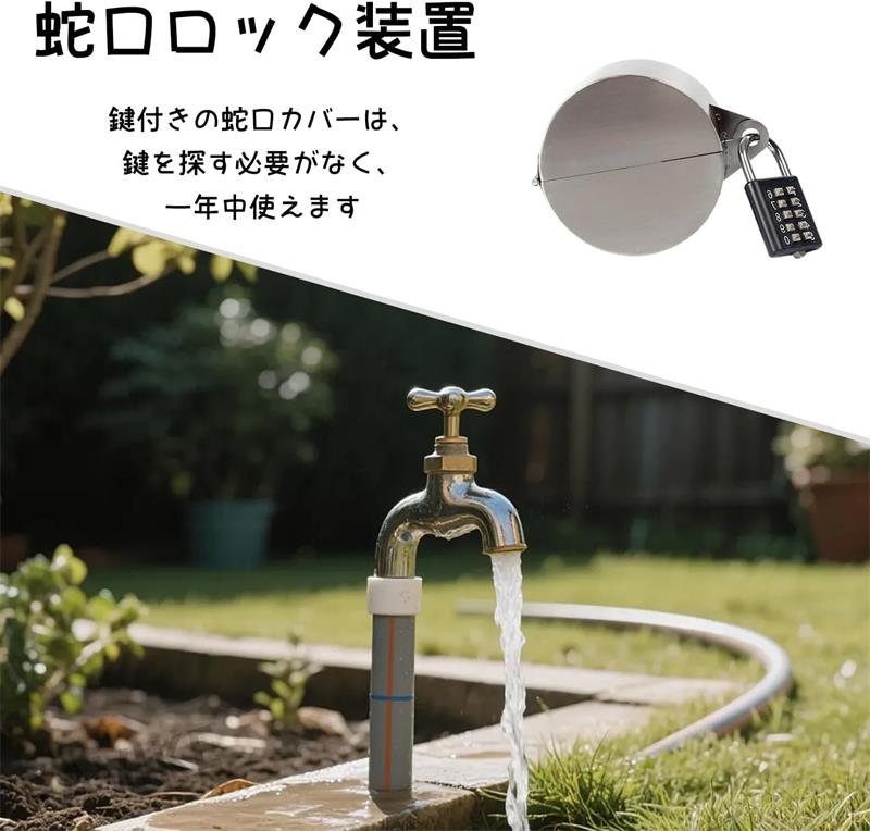 門扉水栓ロック装置 水道蛇口ロック 屋外蛇口カバー ホームタンク 戸外蛇口錠 盗難防止 ステンレス製 屋外水栓 水道部品 錠鍵付きい