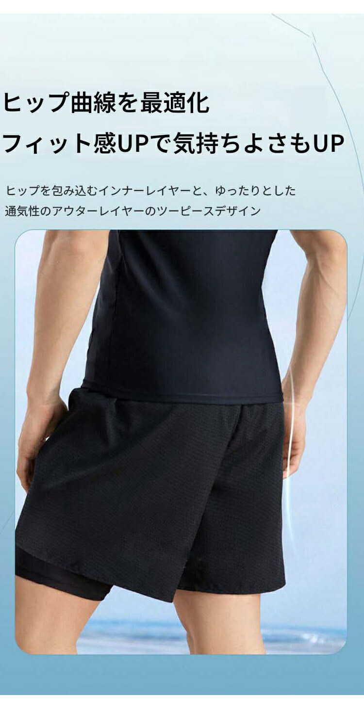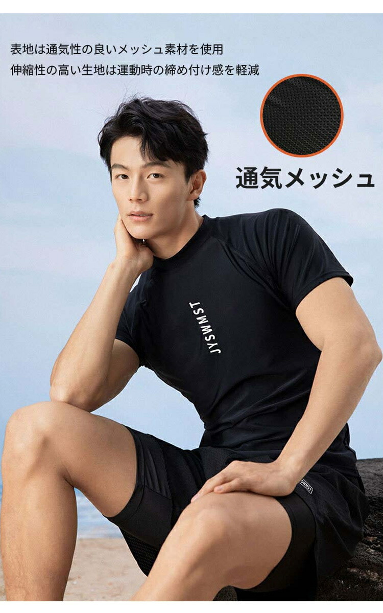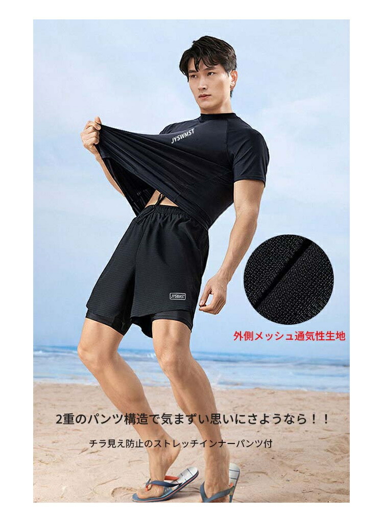 メンズ 水着 上下セット ラッシュガード サーフパンツ スポーツ ビーチ 海水浴 水陸両用 速乾 UVカット おしゃれ 大きいサイズ M~4XL 体型カバー