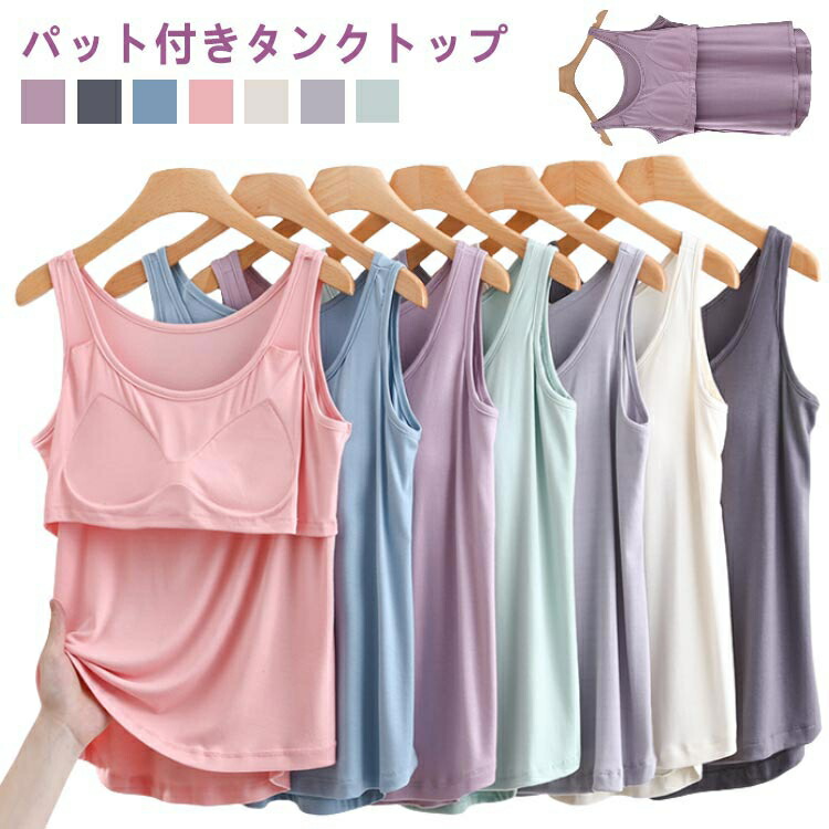 カップ付き タンクトップ 締め付けない ズレない パット付 ラウンドネック アンダーフリー ゴムなし ブラトップ 前のみ パッドのみ 固定 カップ ルームウェア インナー 袖なし インナーレディース