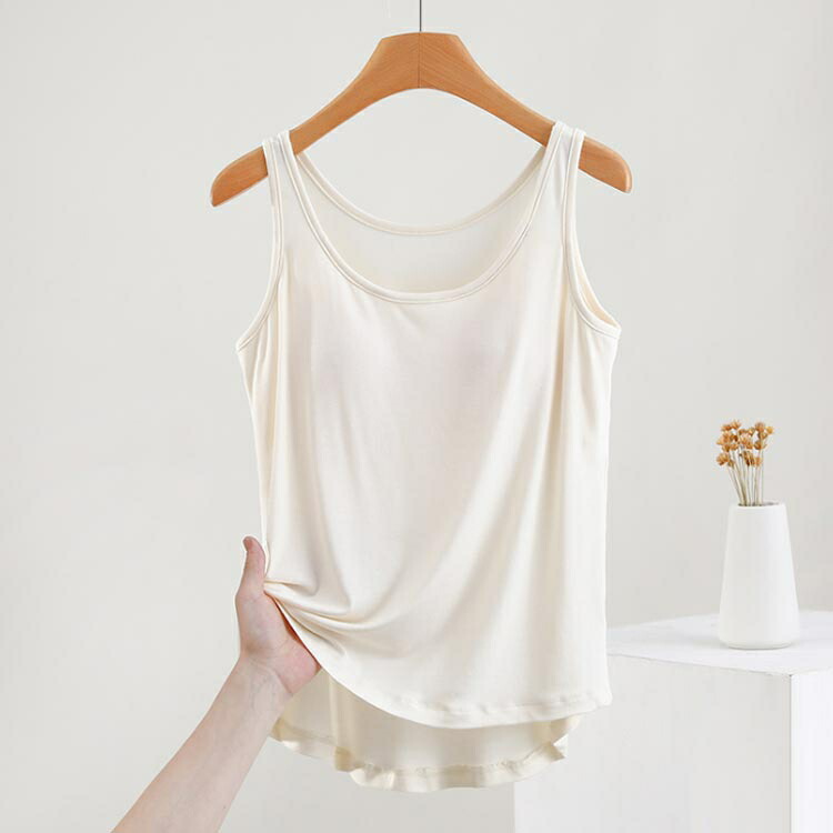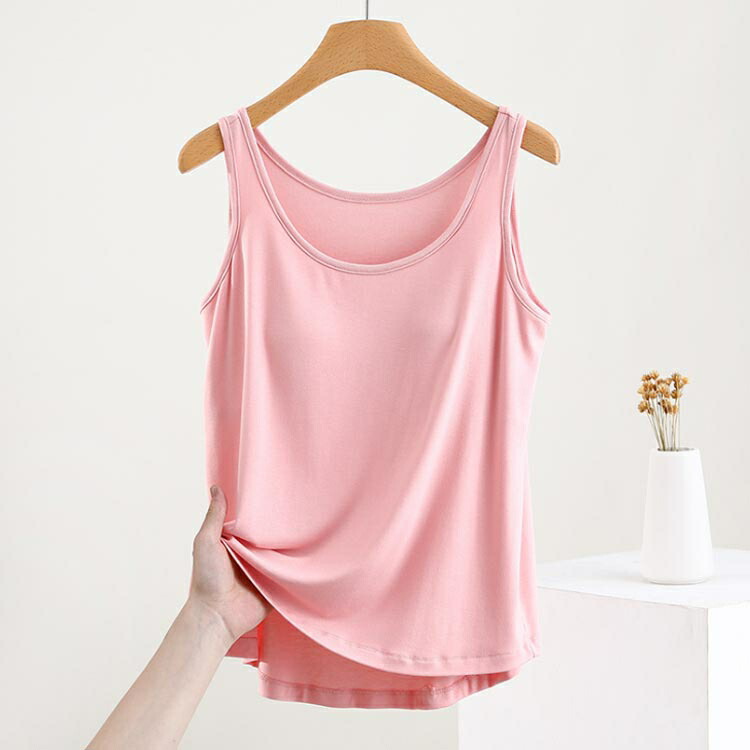 パット付きタンクトップ 見せるインナーとしても、素材に高級感があるのでお勧めです 身体に程よくフィットする伸縮性のあるカットソー素材を使用 滑らかな肌触りで、ストレッチが効いているので着脱しやすいです